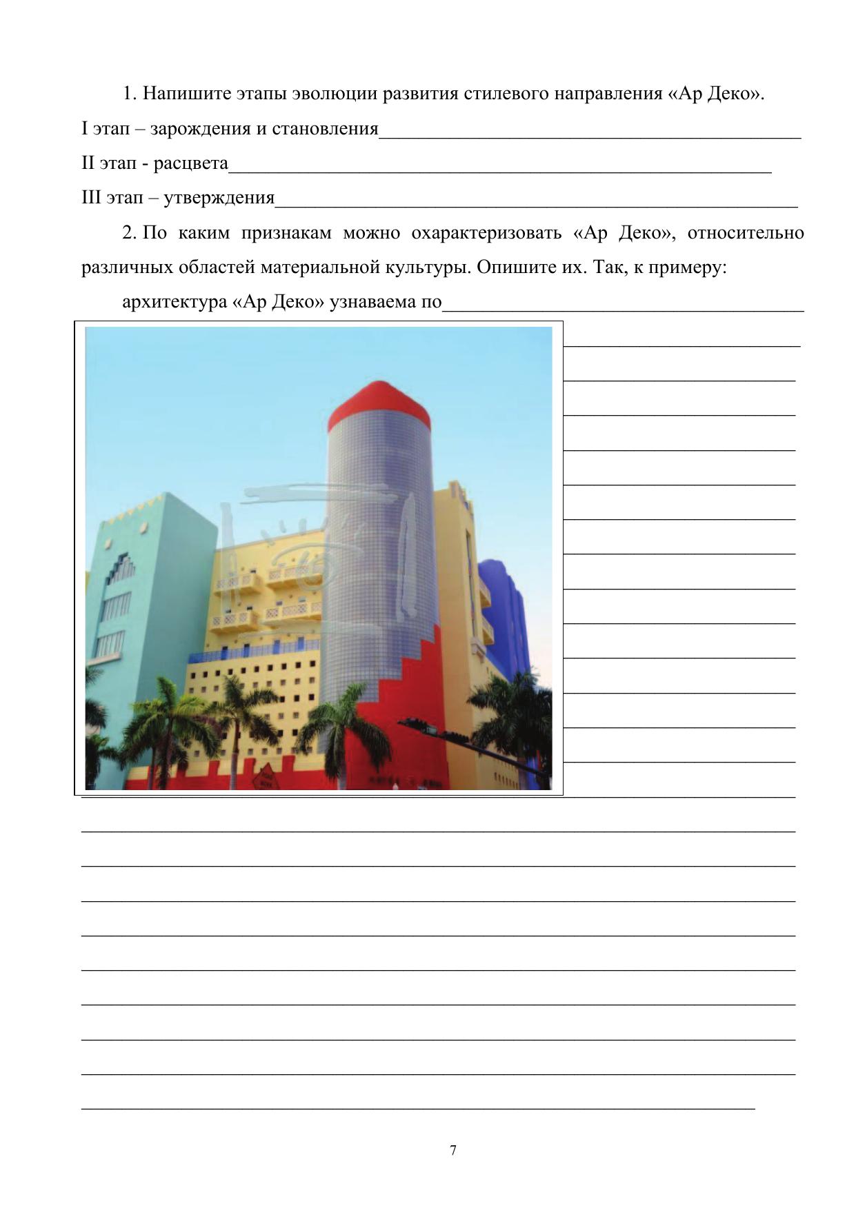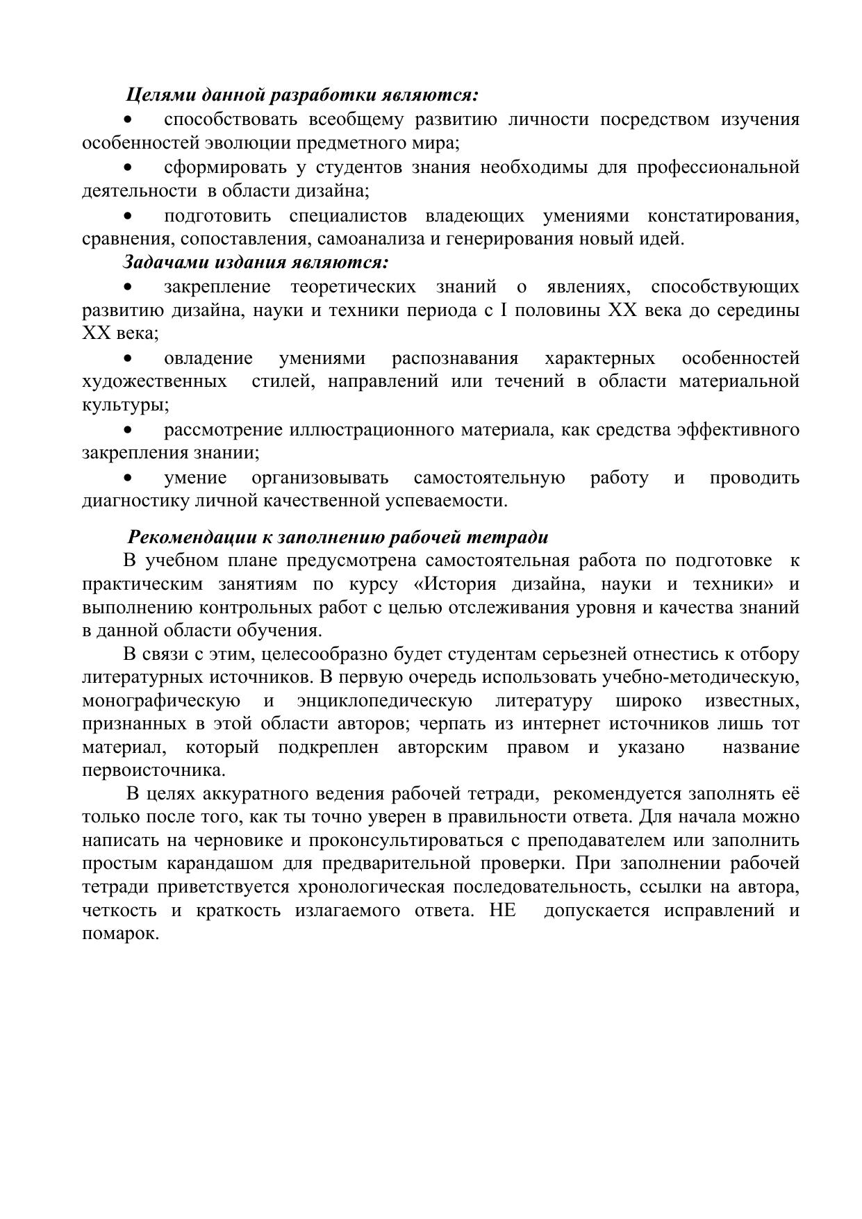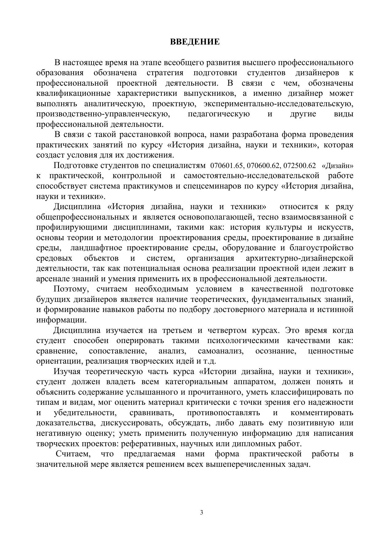 Настоящее издание предназначено для проведения аудиторных практических занятий и для самоподготовки студентов к зачету по первому разделу теоретического курса «История дизайна, науки и техники». В целях эффективности усвоения теоретического материала по данной дисциплине мы предлагаем изучить в хронологическом порядке и проследить эволюцию развития объектов материальной культуры и просматривая иллюстративный материал закрепить знания. Такой подход к изучению нового материала способствует обогащению и развитию визуальной памяти, позволяет выявить характерные особенности пластического, образного конструктивного решения, проектирования внутреннего пространства, детализации и предметного мира вещей, свойств их технологического изготовления. Составляющим звеном печатного издания являются контрольные работы по темам, которые раскрывают содержание понятийного аппарата, особенности конструктивного формообразования и комплексного решения как архитектурных сооружений, интерьера, так и ретроспективного развития предметного мира. Распределение тем захватывают период от доисторического периода до периода средневековья и древнерусского искусства. Для нахождения правильного варианта ответа на вопросы после каждой контрольной работы приводится перечень рекомендуемой литературы и считается минимально необходимой для положительного ответа. Общий список, который находится в конце печатного издания позволяет студенту глубже освоить все разделы программы и продемонстрировать хорошие знания на зачете. Важным акцентирующим моментом является то, что студент, находясь в поиске дополнительной литературы (энциклопедического, монографического характера, интернет ресурсов) автоматически расширяет диапазон теоретических, профессиональных знаний тем самым совершенствуется, всесторонне развивается. В приложении разработаны тесты – опросники и варианты контрольных заданий по разделам, которые являются дополнением к предыдущим заданиям. Они не являются обязательными, но при определении качественных и количественных характеристиках станут неоценимо важным материалом. Для студентов специальности «Дизайн».