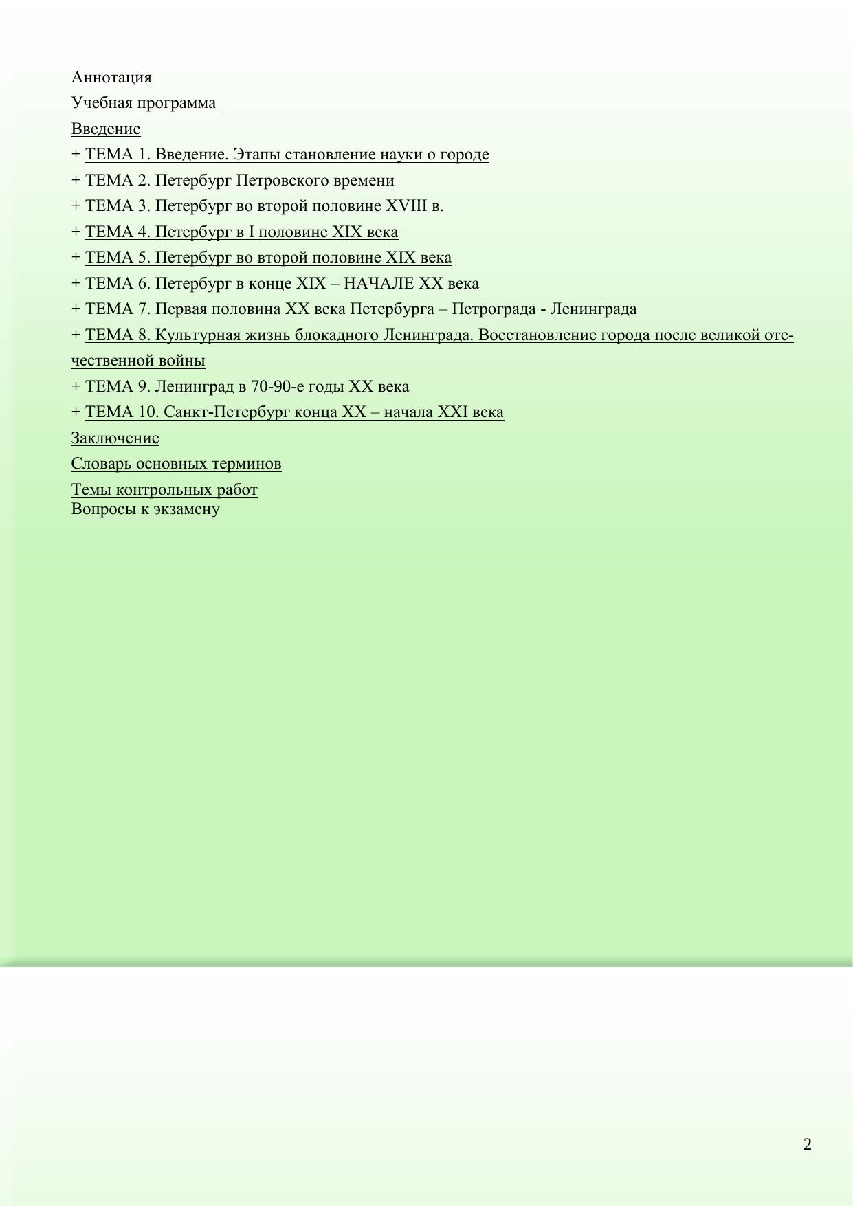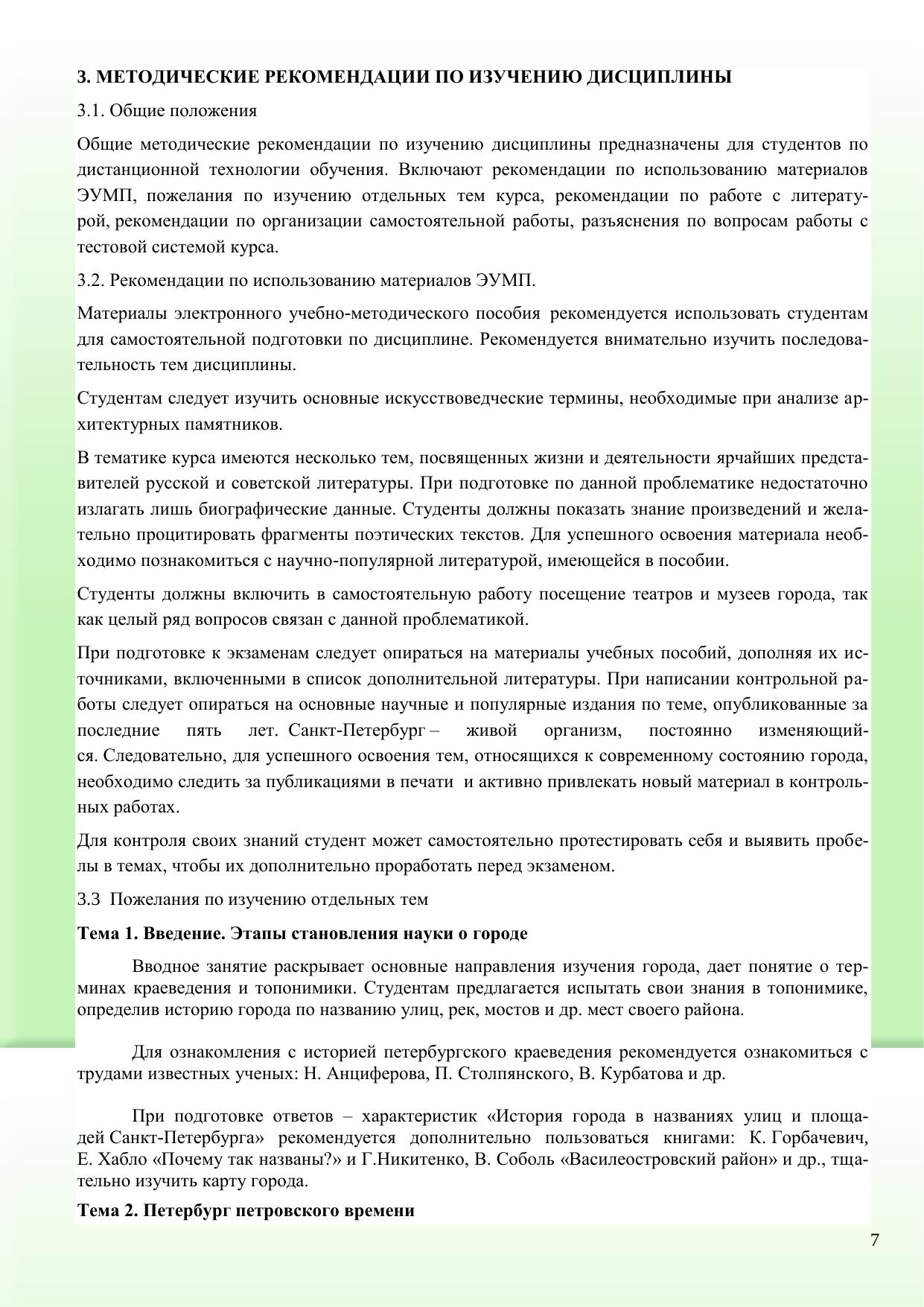 Электронное учебное пособие включает рабочую учебную программу дисциплины, общие методические рекомендации по изучению дисциплины, методические рекомендации контрольным работам, порядок проведения контроля качества подготовки студентов по дисциплине, содержание контролирующих материалов, курс лекций, словарь терминов. Всесторонне и многогранно рассмотрены вопросы культуры, истории города, дано обобщение общегосударственных исторических процессов, вопросов краеведения, и их отражение на жизнь Санкт-Петербурга и его жителей. Пособие предназначено для студентов ВУЗов. Электронное учебное пособие для дистанционного обучения