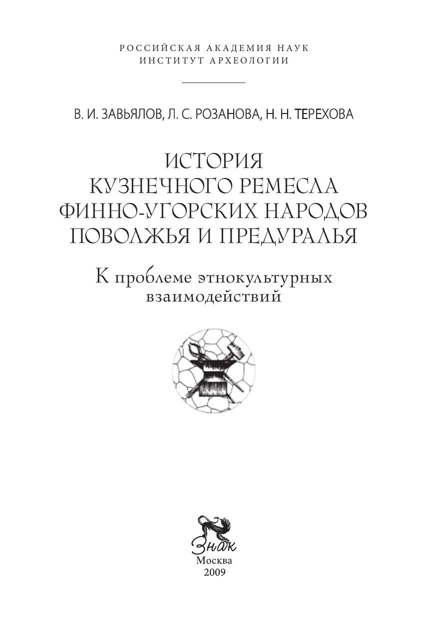 История кузнечного ремесла финно-угорских народов Поволжья и Предуралья: К проблеме этнокультурных взаимодействий