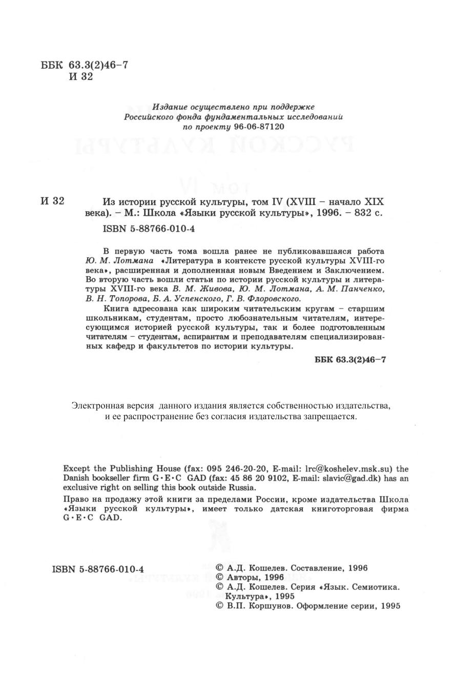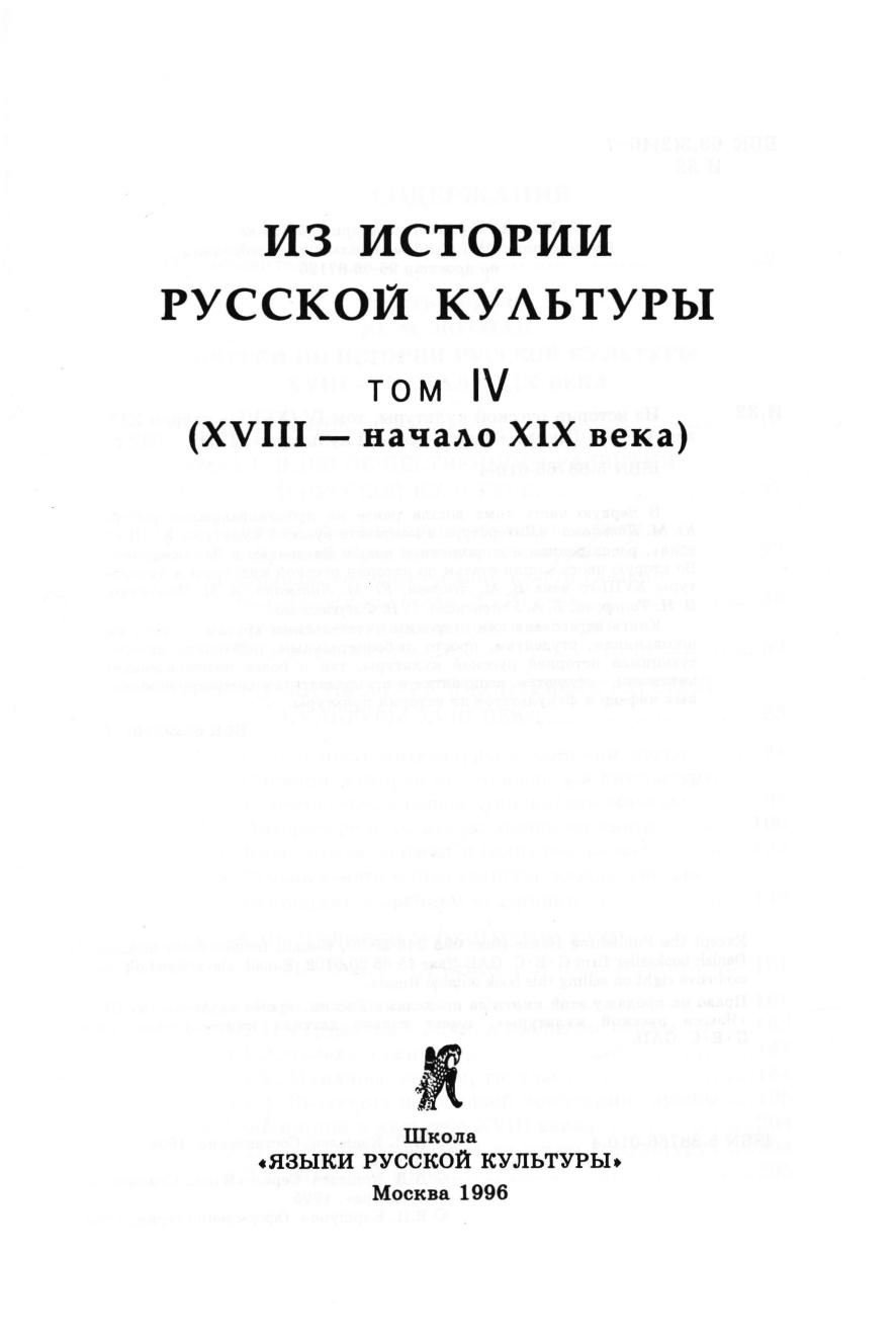 Из истории русской культуры. Т. IV. (XVIII - начало XIX века)