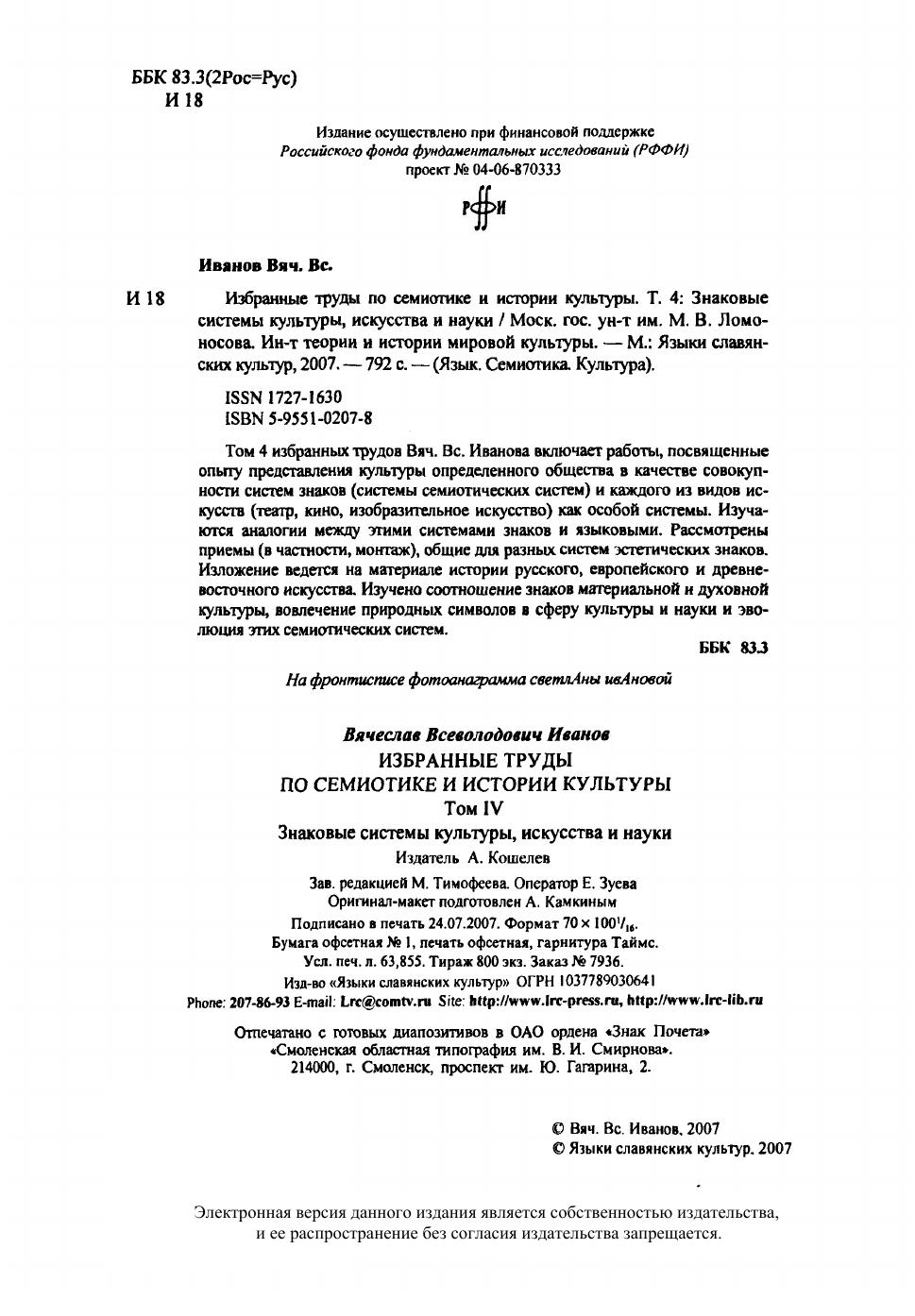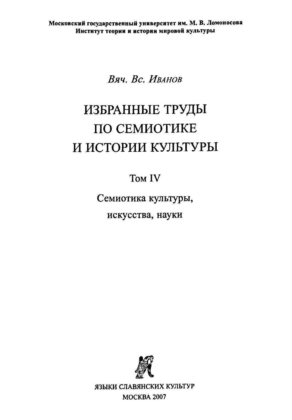 Том 4 избранных трудов Вяч.Вс.Иванова включает работы, посвященные опыту представления культуры определенного общества в качестве совокупности систем знаков (системы семиотических систем) и каждого из видов искусств (театр, кино, изобразительное искусство) как особой системы. Изучаются аналогии между этими системами знаков и языковыми. Рассмотрены приемы (в частности, монтаж), общие для разных систем эстетических знаков. Изложение ведется на материале истории русского, европейского и древневосточного искусства. Изучено соотношение знаков материальной и духовной культуры, вовлечение природных символов в сферу культуры и науки и эволюция этих семиотических систем.