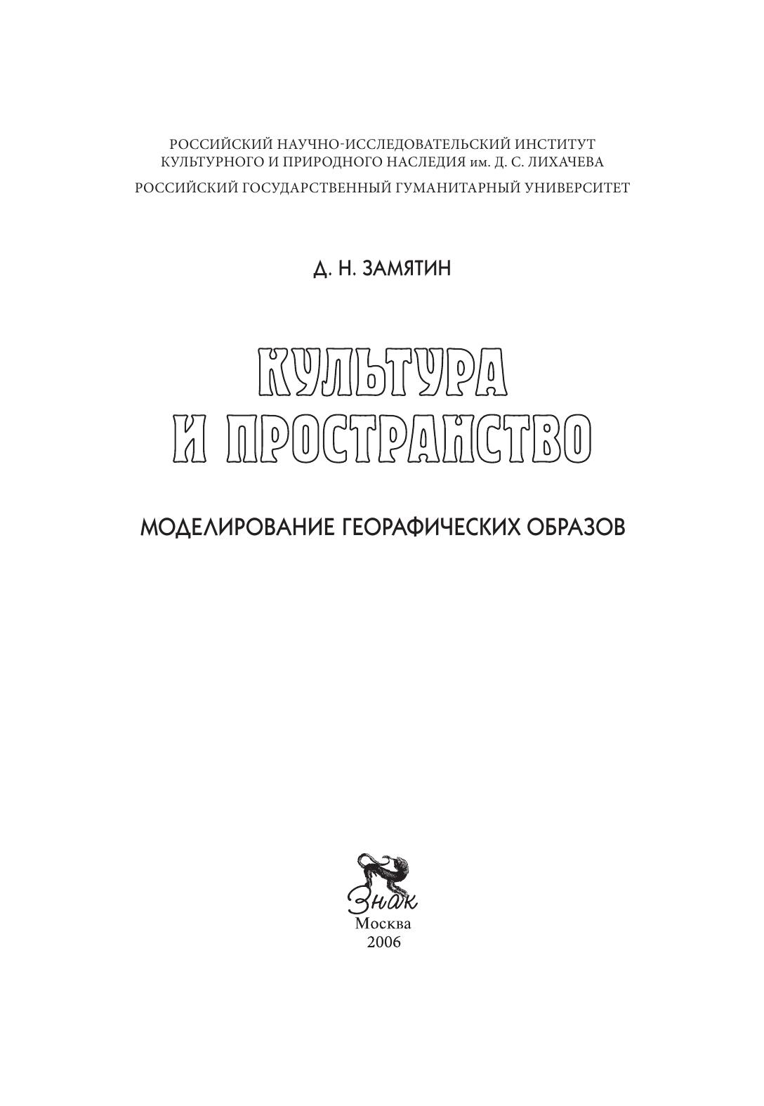 Культура и пространство: Моделирование географических образов