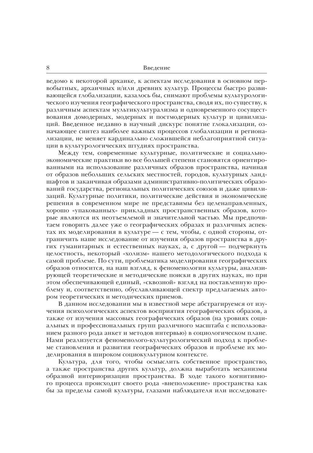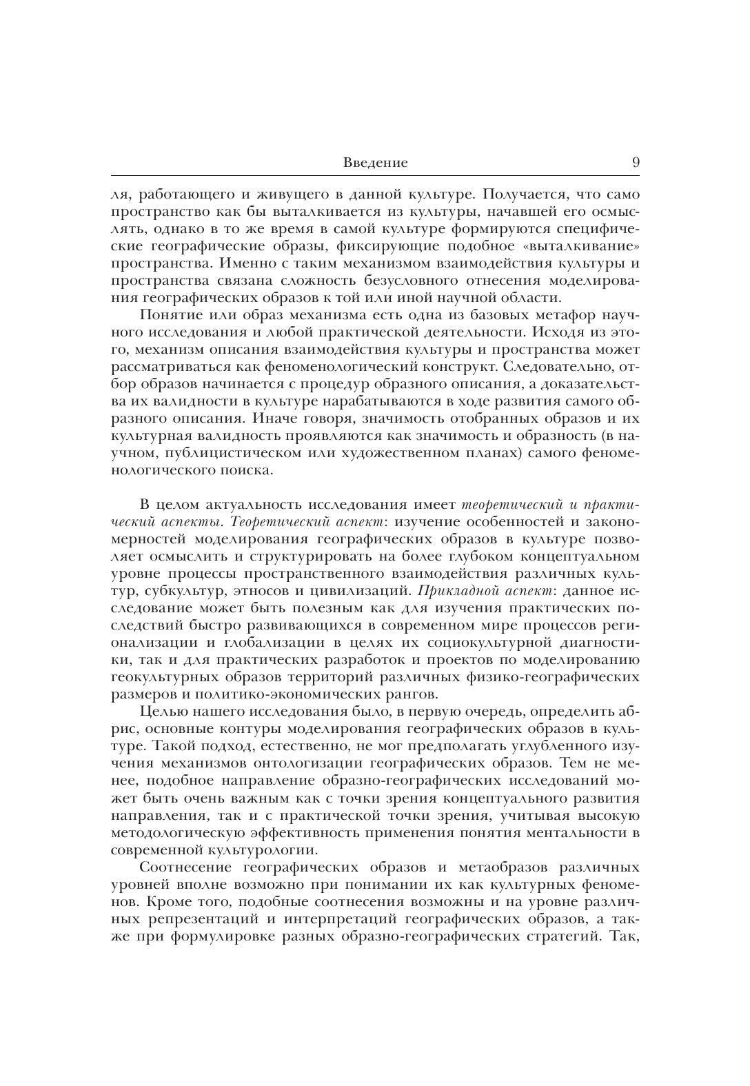 Монография посвящена исследованию процессов взаимодействия культуры и пространства. Анализируются различные культурные традиции восприятия и воображения географического пространства. В качестве одного из эффективных механизмов описания и характеристики подобных взаимодействий предлагается концепция моделирования географических образов. В книге рассмотрены основные классификации географических образов в культуре, выявлены базовые стратегии репрезентации и интерпретации географических образов в различных сферах культуры и человеческой деятельности. Книга может быть полезна ученым-гуманитариям, изучающим проблемы представления культурных пространств, преподавателям и студентам гуманитарных специальностей вузов.
