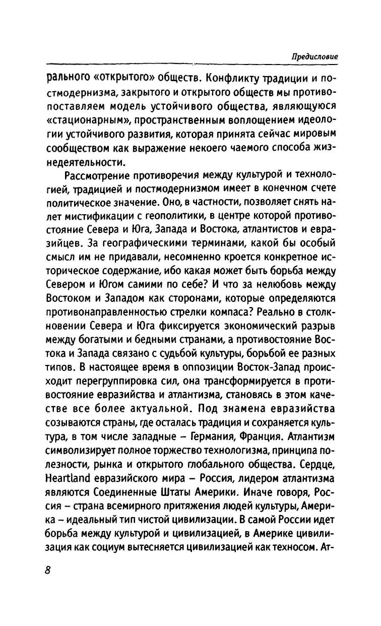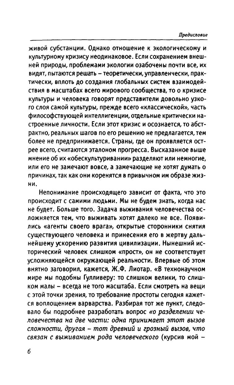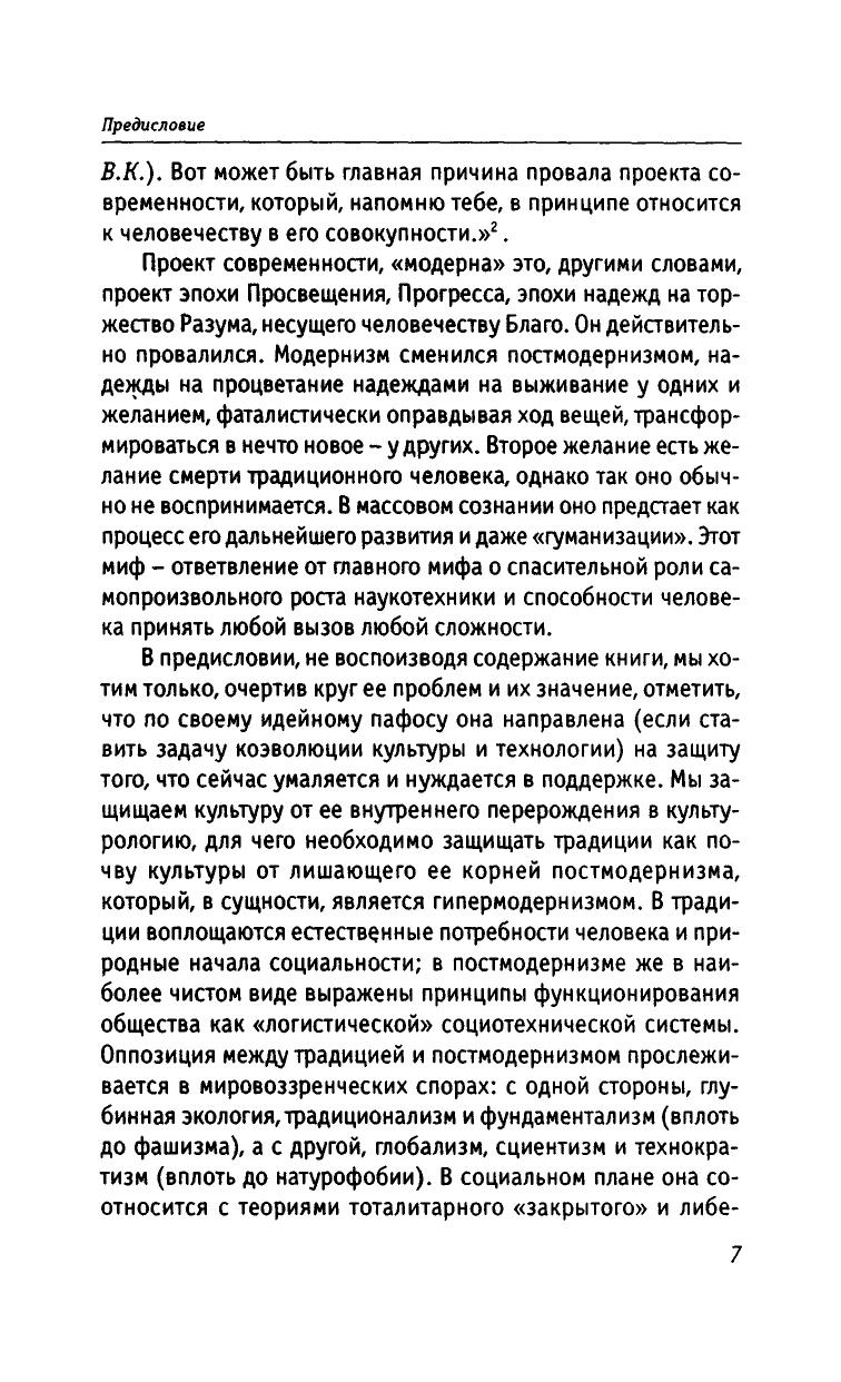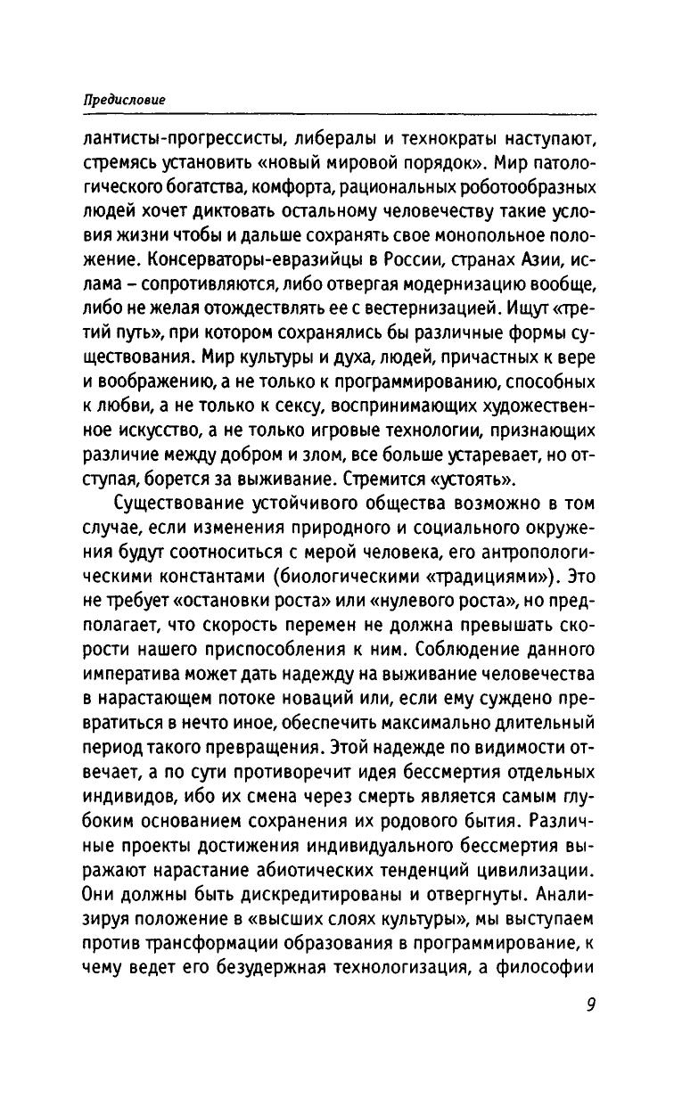 Конец культуры - глобальная проблема XXI века. Главная причина кризиса культуры - ее перерождение в технологию. Показано, что технологизация жизни есть результат сведения духа к разуму. В условиях постмодернизма культура становится традицией. Ее сохранению отвечает устойчивое общество. Оно является структурной проекцией устойчивого развития, в то время как открытое общество опирается на прогрессизм. Телесная и духовная идентичность человека требует системы образования, в которой наряду с наукой воспроизводились бы все основные формы культуры. Автор развивает идею, что ради выживания человечество должно сделать консервативный поворот к Экологии Бытия.