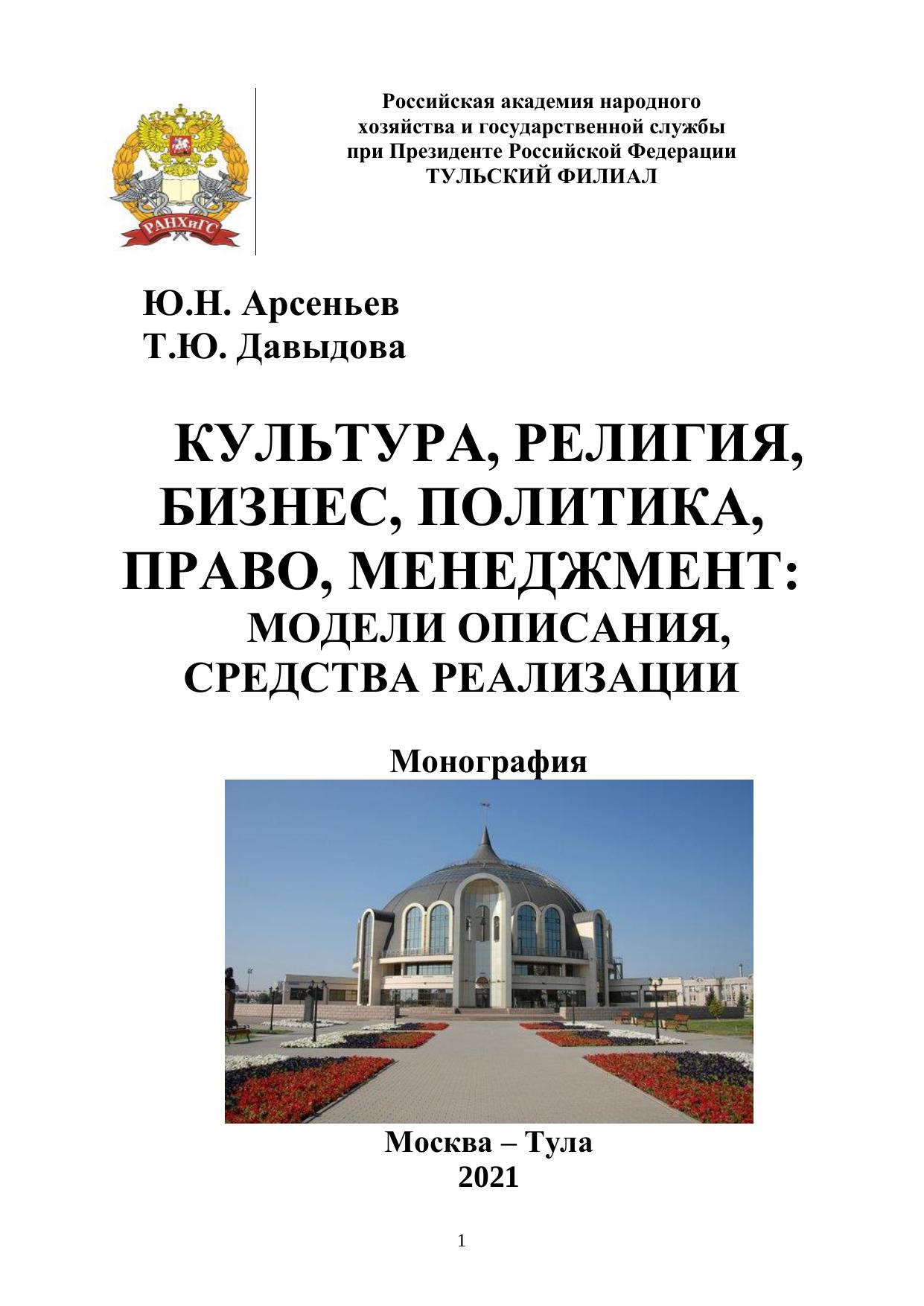 Культура, религия, бизнес, политика, право, менеджмент: модели описания, средства реализации