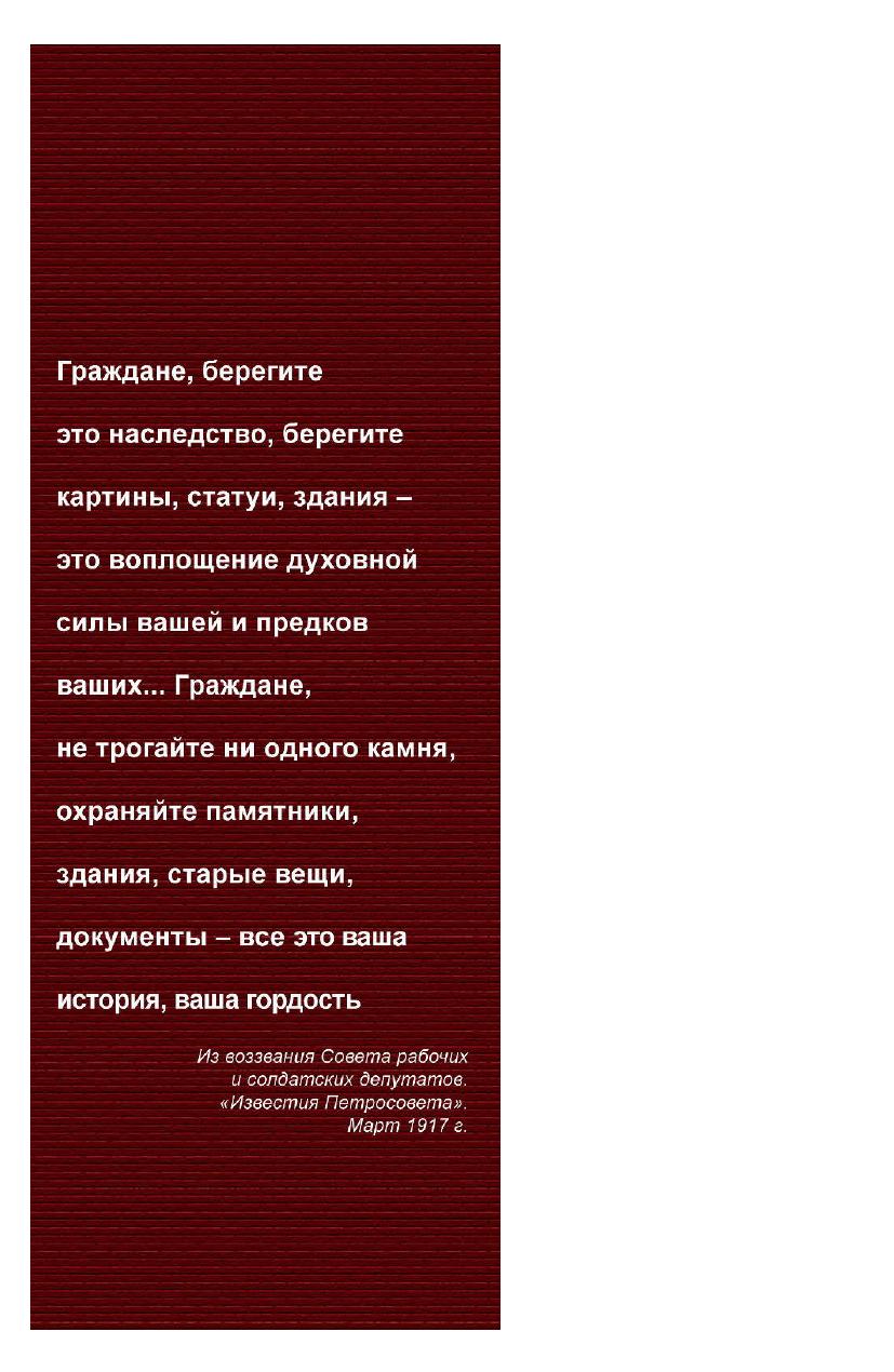 В качестве иллюстративного материала приведены плакаты советского времени, хранившиеся в архивах, малоизвестные портреты реставраторов, коллекционеров, музейных работников, краткие биографические сведения о них.