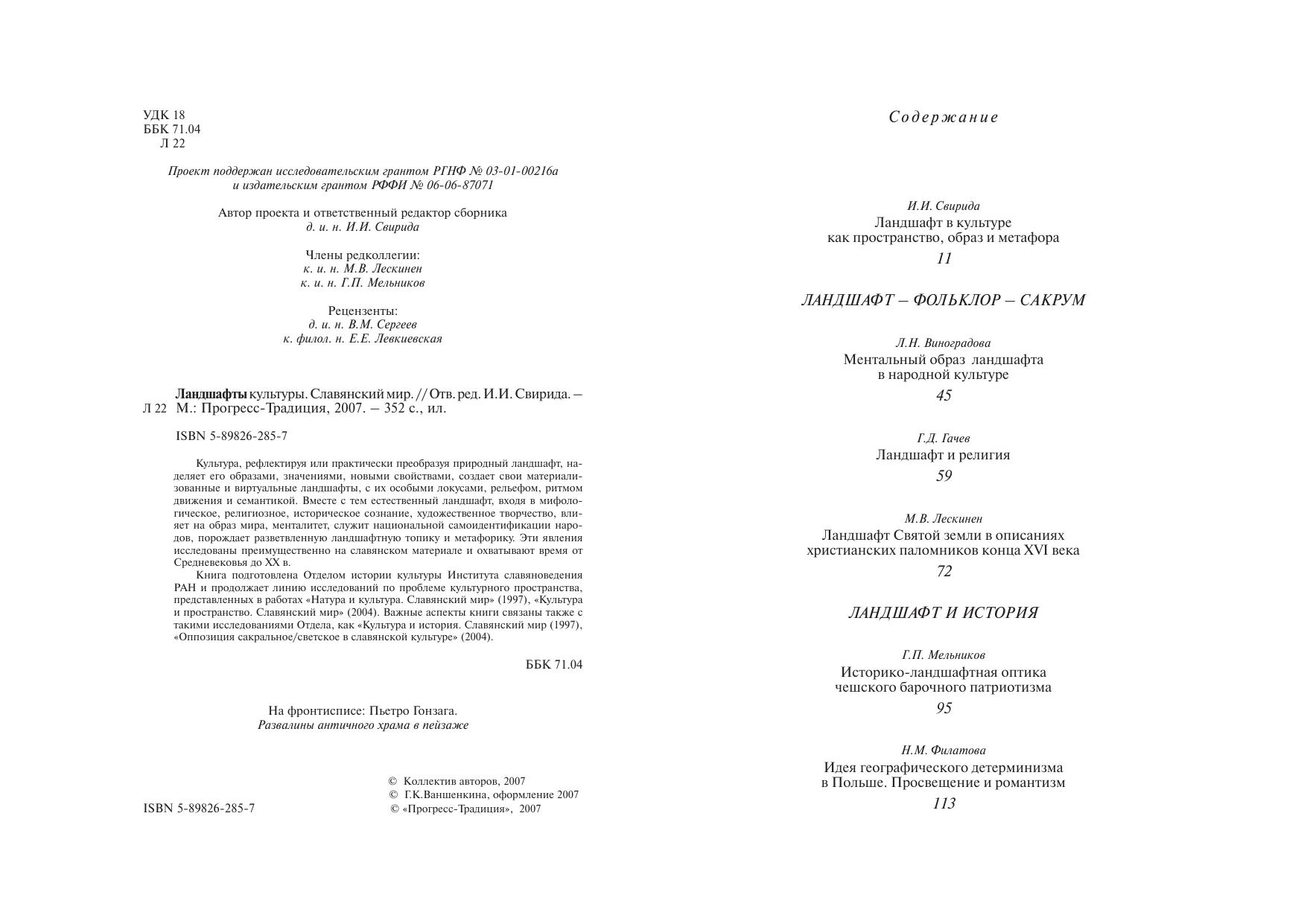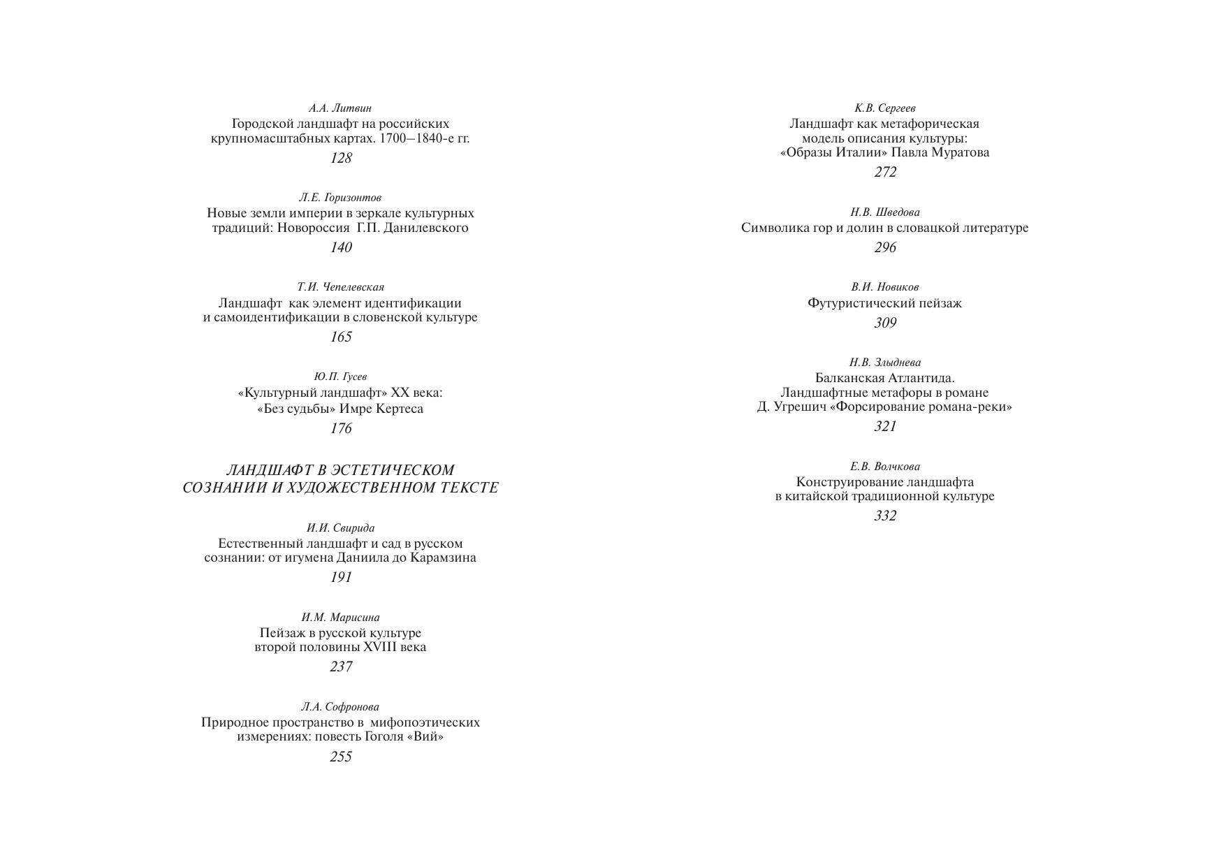 Культура, рефлектируя или практически преобразуя природный ландшафт, наделяет его образами, значениями, новыми свойствами, создает свои материализованные и виртуальные ландшафты, с их особыми локусами, рельефом, ритмом движения и семантикой. Вместе с тем естественный ландшафт, входя в мифологическое, религиозное, историческое сознание, художественное творчество, влияет на образ мира, менталитет, служит национальной самоидентификации народов, порождает разветвленную ландшафтную топику и метафорику. Эти явления исследованы преимущественно на славянском материале и охватывают время от Средневековья до XX в.