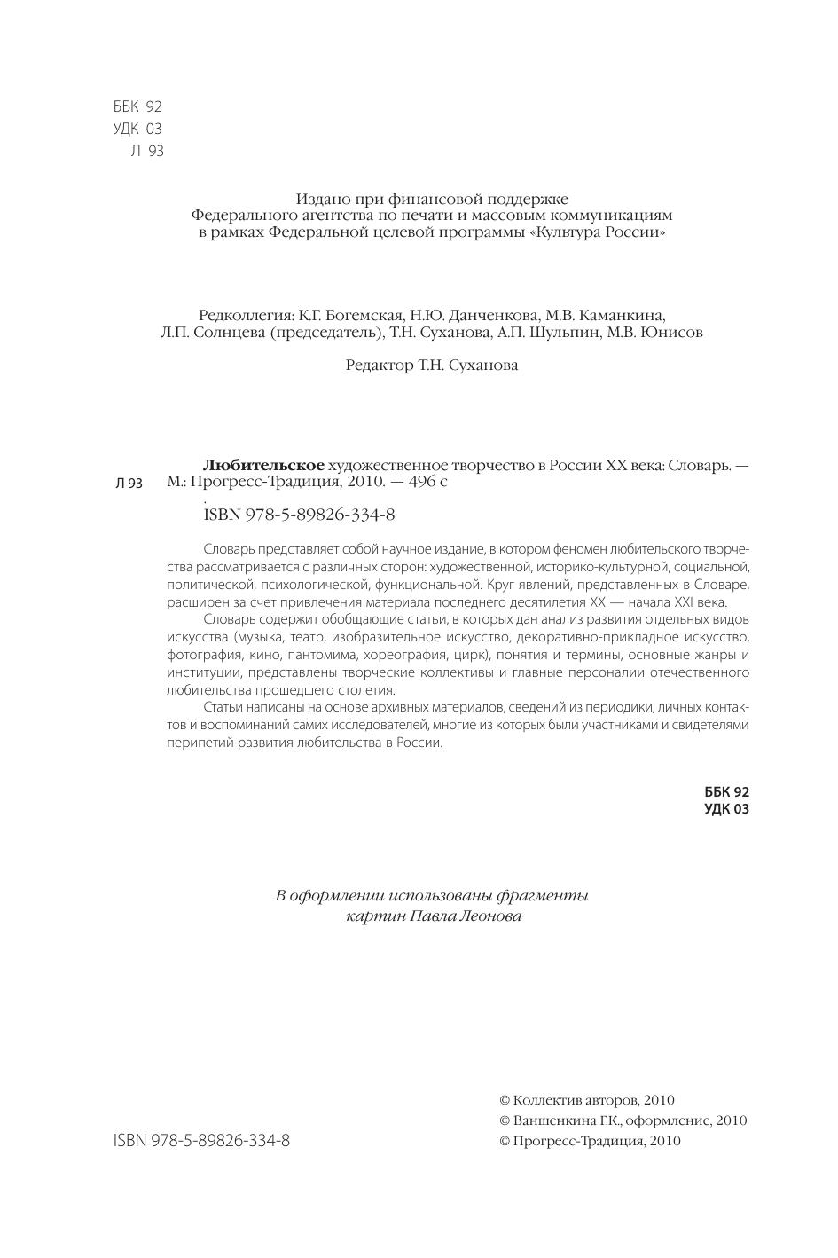 Любительское художественное творчество в России ХХ века: Словарь
