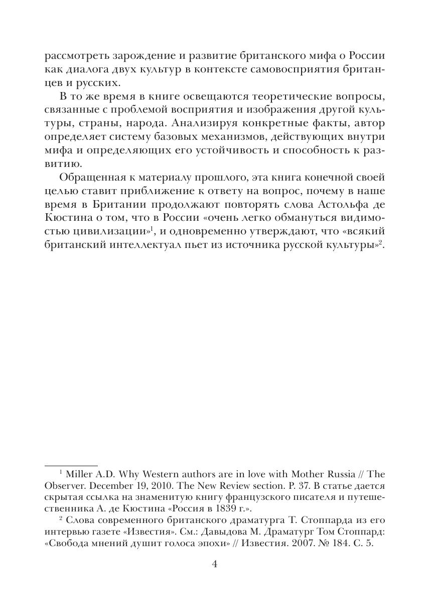 Миф о России рассматривается в монографии как целостная семиотическая структура национальной культуры. Выражаемая в образах, стереотипах, суждениях, сюжетах, эта семиотическая структура складывается постепенно, с опорой на представления о "своем" и в непосредственной связи со сложным культурно-историческим и социально-политическим контекстом эпохи. Ее основной функцией является концептуализация опыта восприятия явлений мира иной культуры; ее важнейшей характеристикой - взаимосвязь всех существенных результатов этой концептуализации.