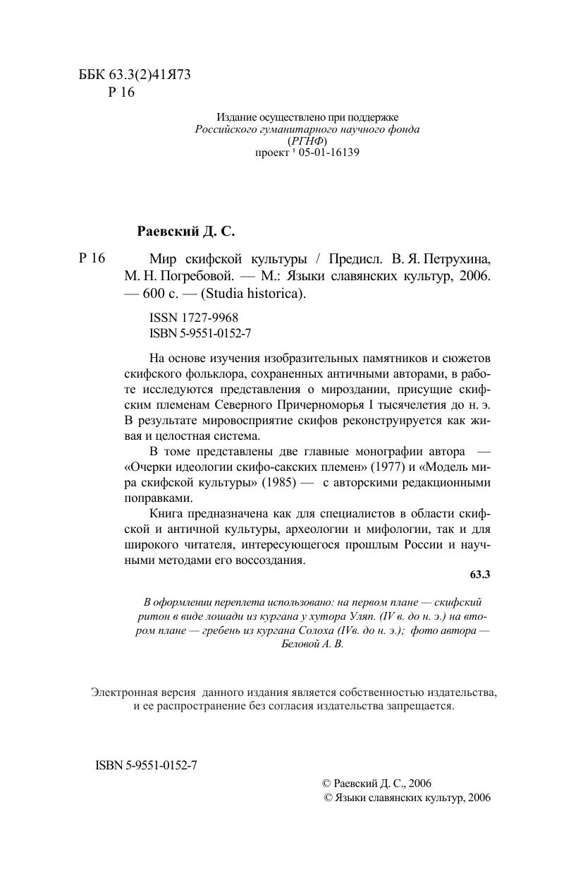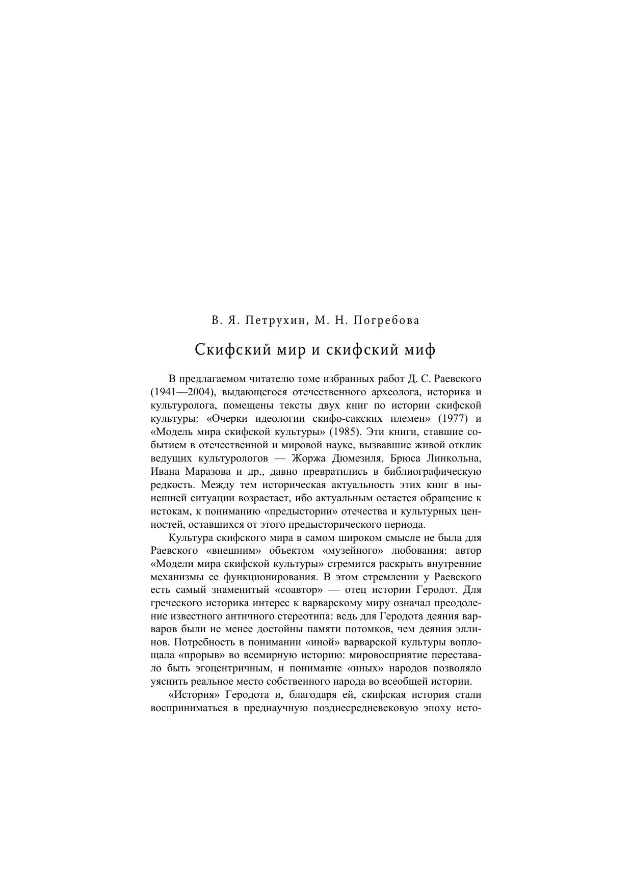 На основе изучения изобразительных памятников и сюжетов скифского фольклора, сохраненных античными авторами, в работе исследуются представления о мироздании, присущие скифским племенам Северного Причерноморья I тысячелетия до н.э. В результате мировосприятие скифов реконструируется как живая и целостная система.В томе представлены две главные монографии автора – «Очерки идеологии скифо-сакских племен» (1977) и «Модель мира скифской культуры» (1985) – с авторскими редакционными поправками.Книга предназначена как для специалистов в области скифской и античной культуры, археологии и мифологии, так и для широкого читателя, интересующегося прошлым России и научными методами его воссоздания