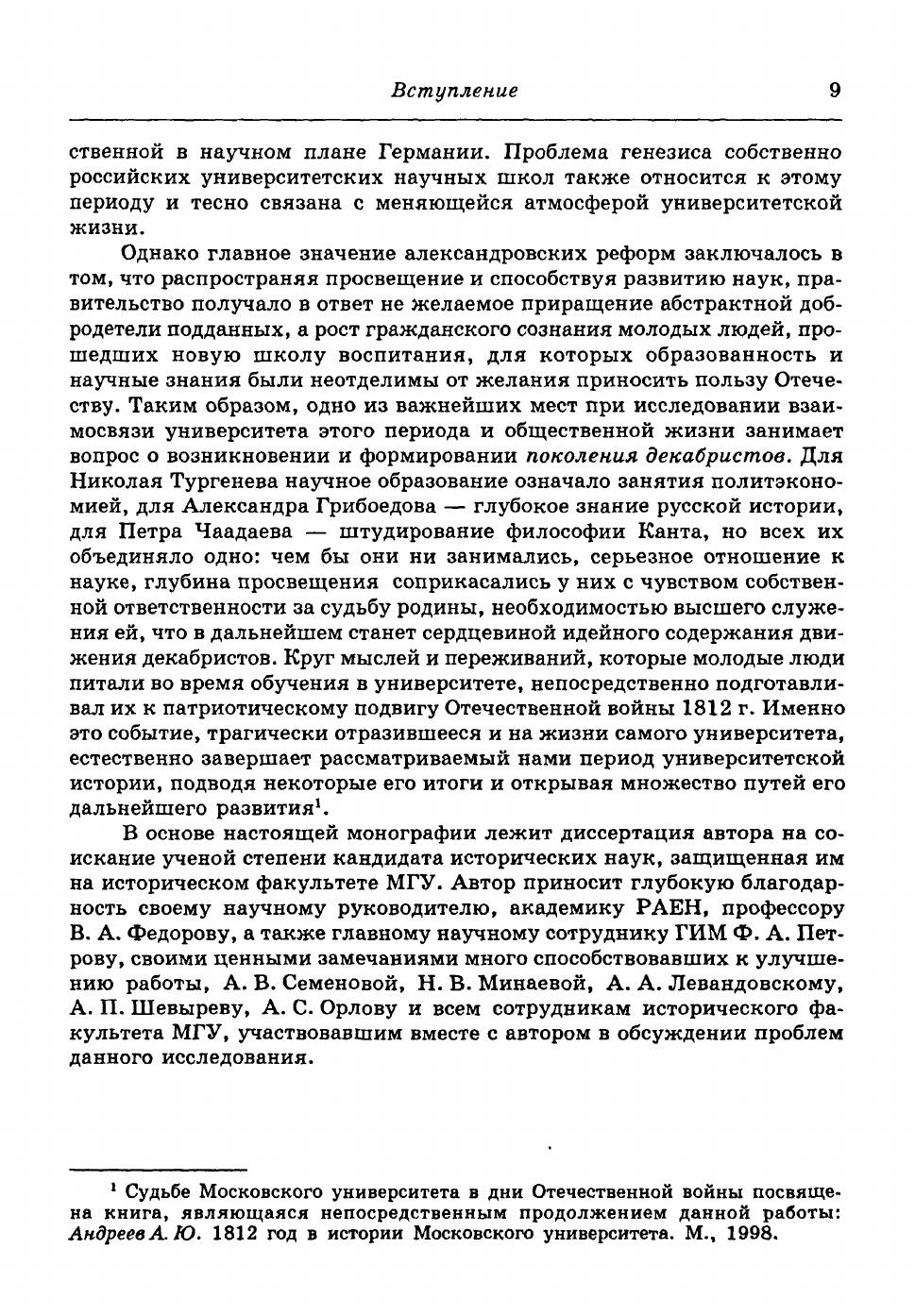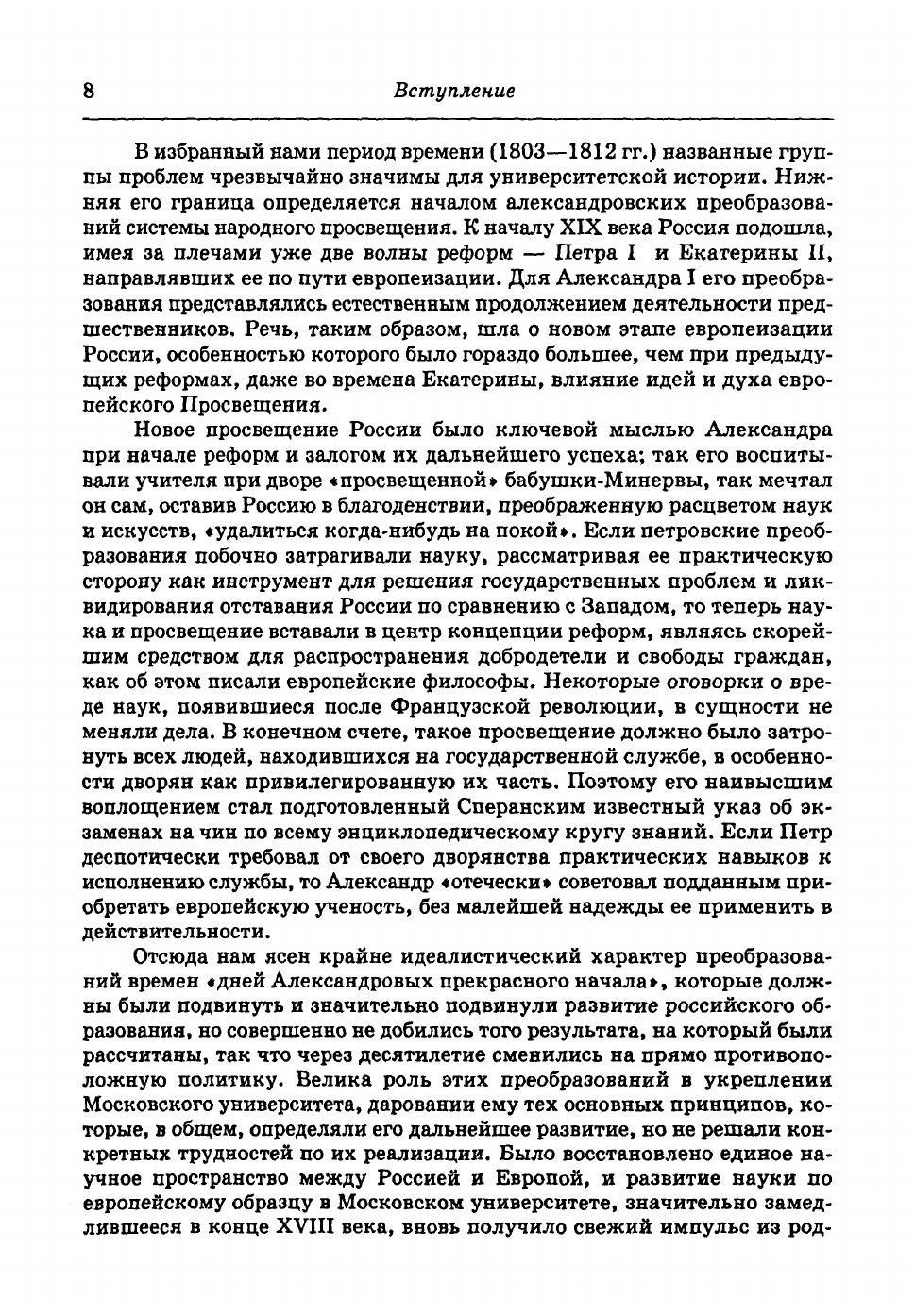 Книга посвящена одному из важнейших периодов истории Московского университета – первому десятилетию XIX века. Именно в это время формируются и развиваются главные черты, определившие в дальнейшем облик университета и российской высшей школы в целом. Очерк университетской истории представлен в книге на широком фоне культурной жизни русского общества начала XIX века. Даны яркие портреты профессоров и студентов того времени, среди которых Грибоедов, Чаадаев, многие будущие декабристы. Книга написана на основе большого круга архивных источников, многие из которых впервые вводятся в научный оборот. Книга адресована всем читателям, интересующимся историей русской науки и культуры.