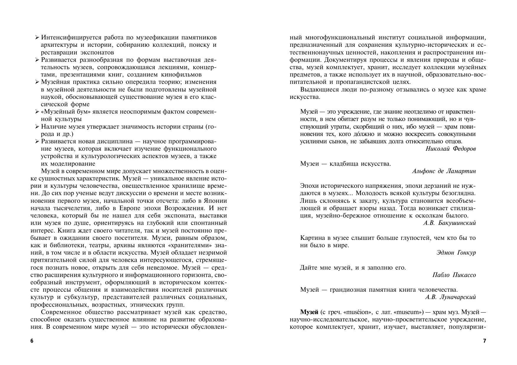 Интегрированный курс "Музеи мира" в рамках дисциплины "История мировых цмвилизаций" определяет роль и значение музея контексте мировой истории и культуры. Курс включает изучение следующих тем: роль музеев в современном обществе и мировой культуре; музейная политика на примере отдельных стран и конкретных музеев; музейный менеджмент и музейный маркетинг; музей в стрктуре туристического бизнеса. Цель данного пособия — формирование навыков и умений визуального общения студентов с художественными произведениями — музейными экспонатами. Для студентов, обучающихся по специальностям "социально-культурный сервис и туризм", "Социальная антропология", "Культурология", "История", и всех интересующихся мировой художественной культурой и музейным делом.
