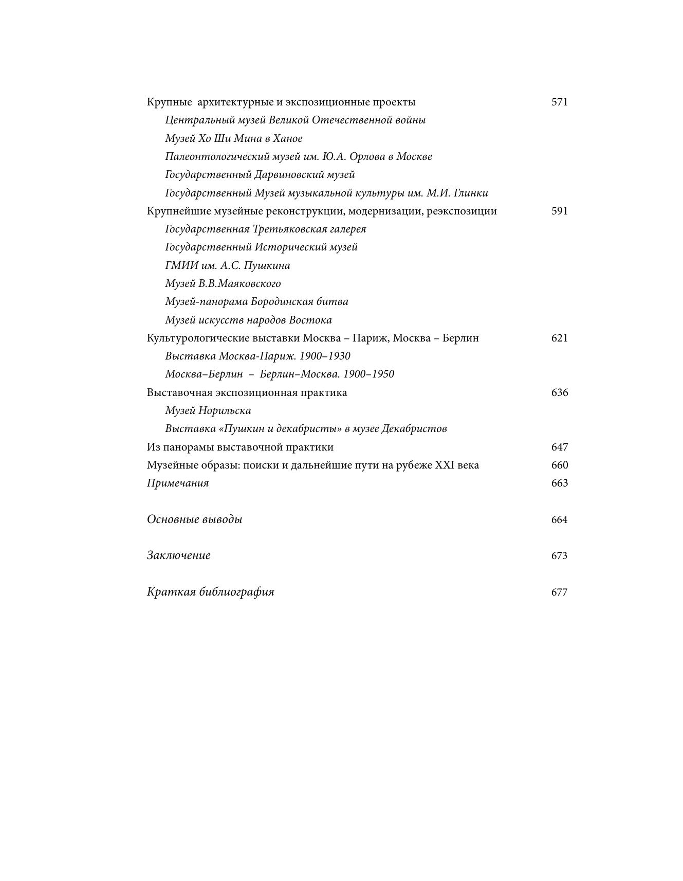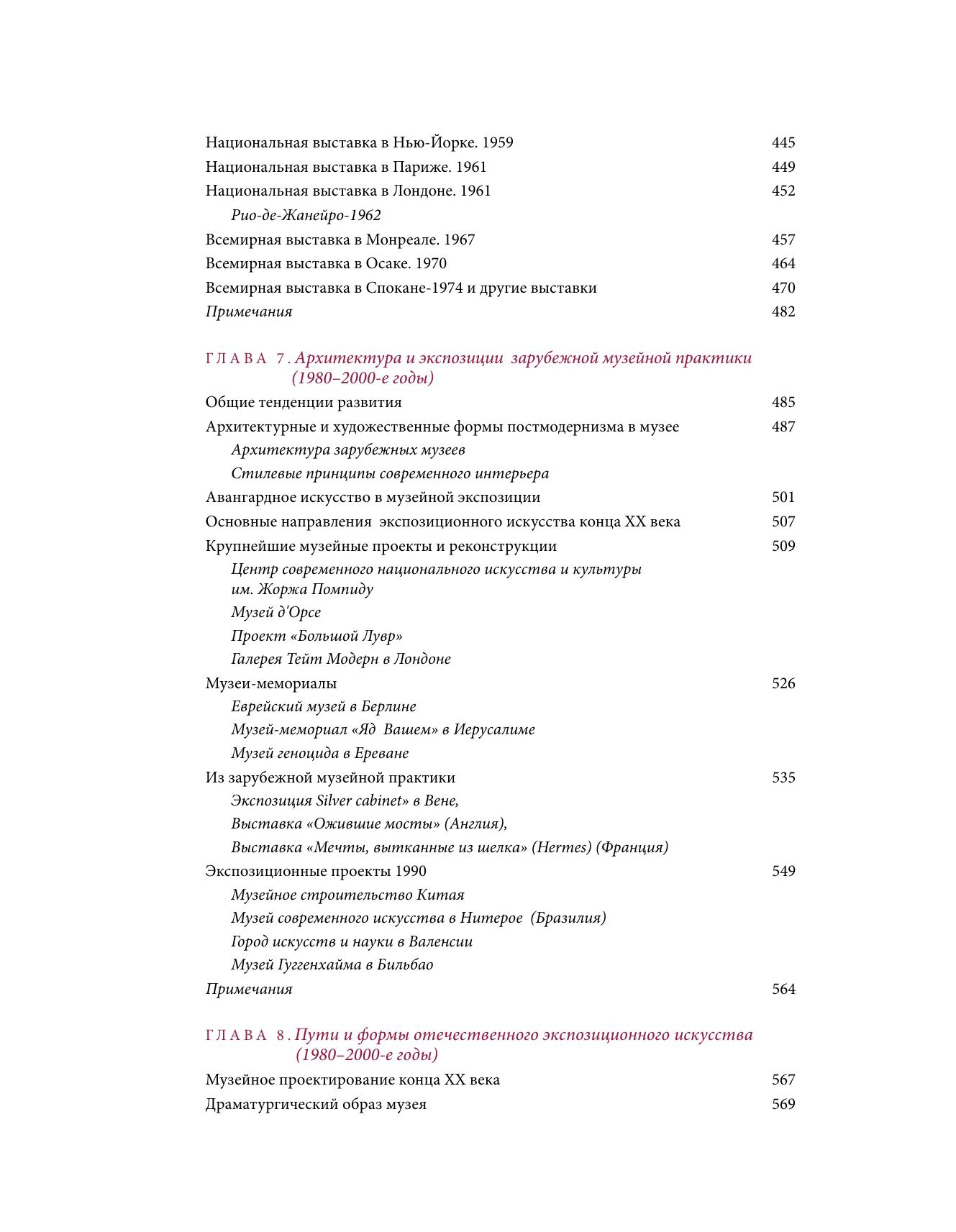 построения среды и образа, научными концепциями, в контексте исторического развития, художественных стилей, тенденций и направлений ХХ столетия. Приводятся проекты крупнейших архитекторов, художников и дизайнеров, работавших в сфере музейного строительства и искусства экспозиции.