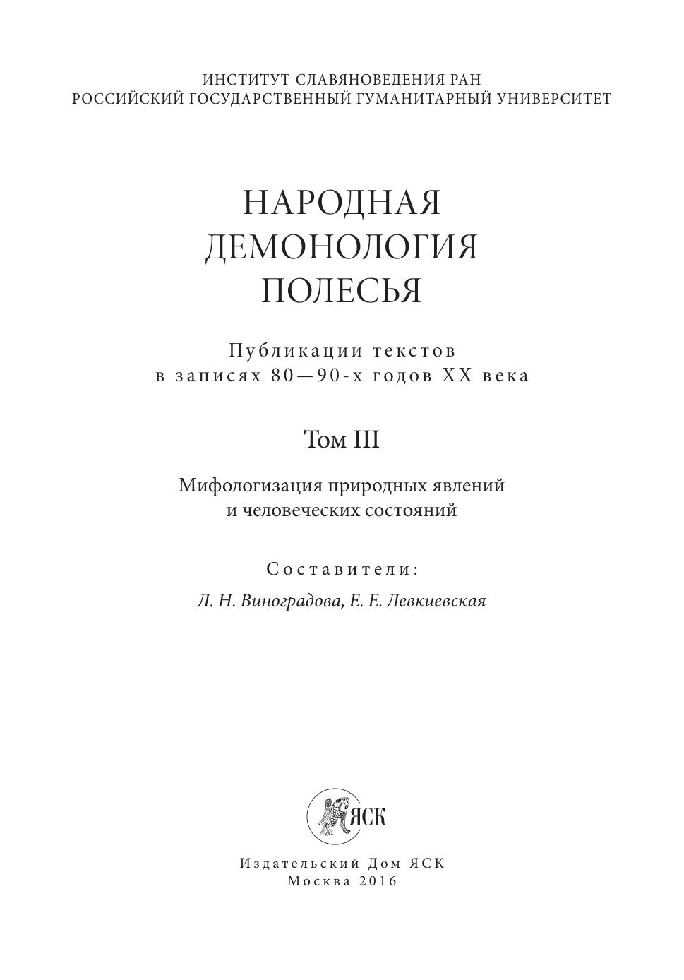 Народная демонология Полесья: Публикация текстов в записях 80-90-х гг. ХХ в. Т. 3
