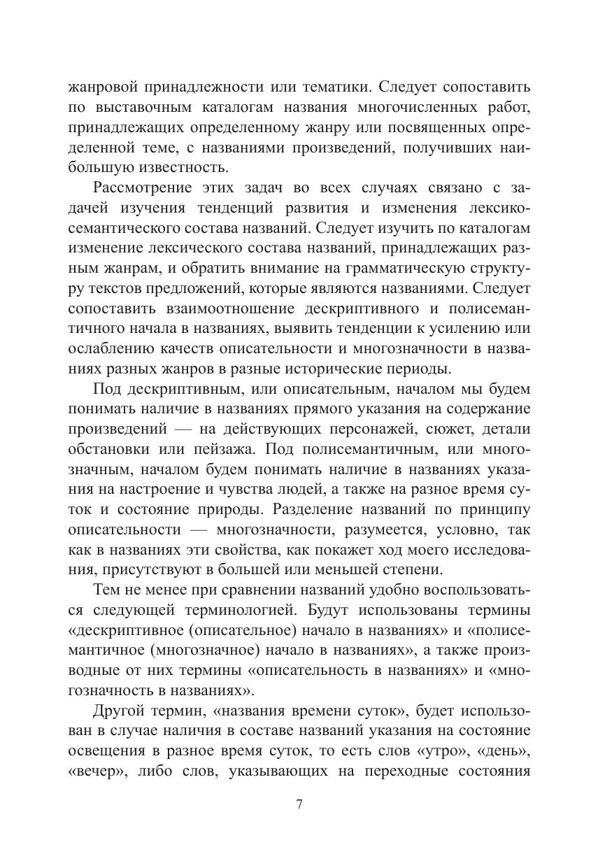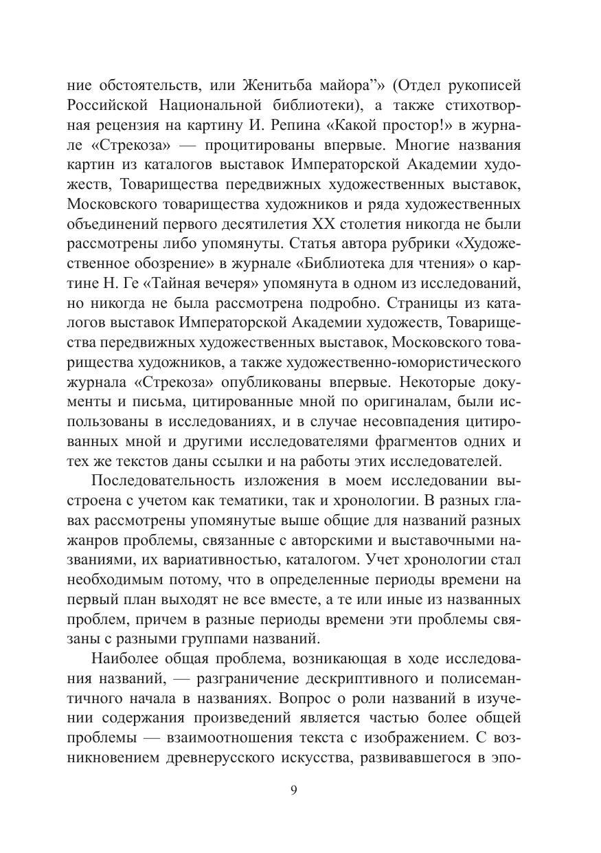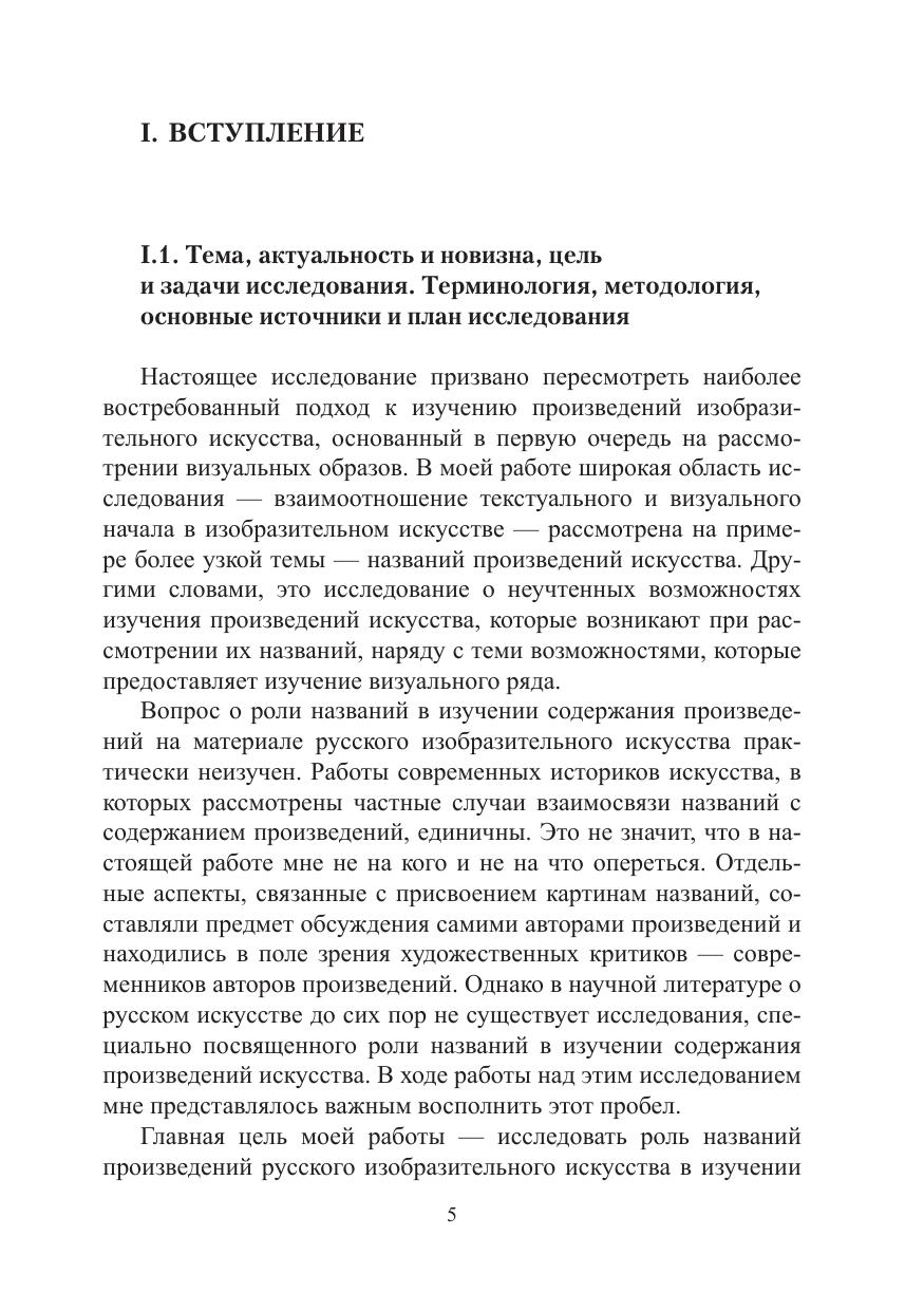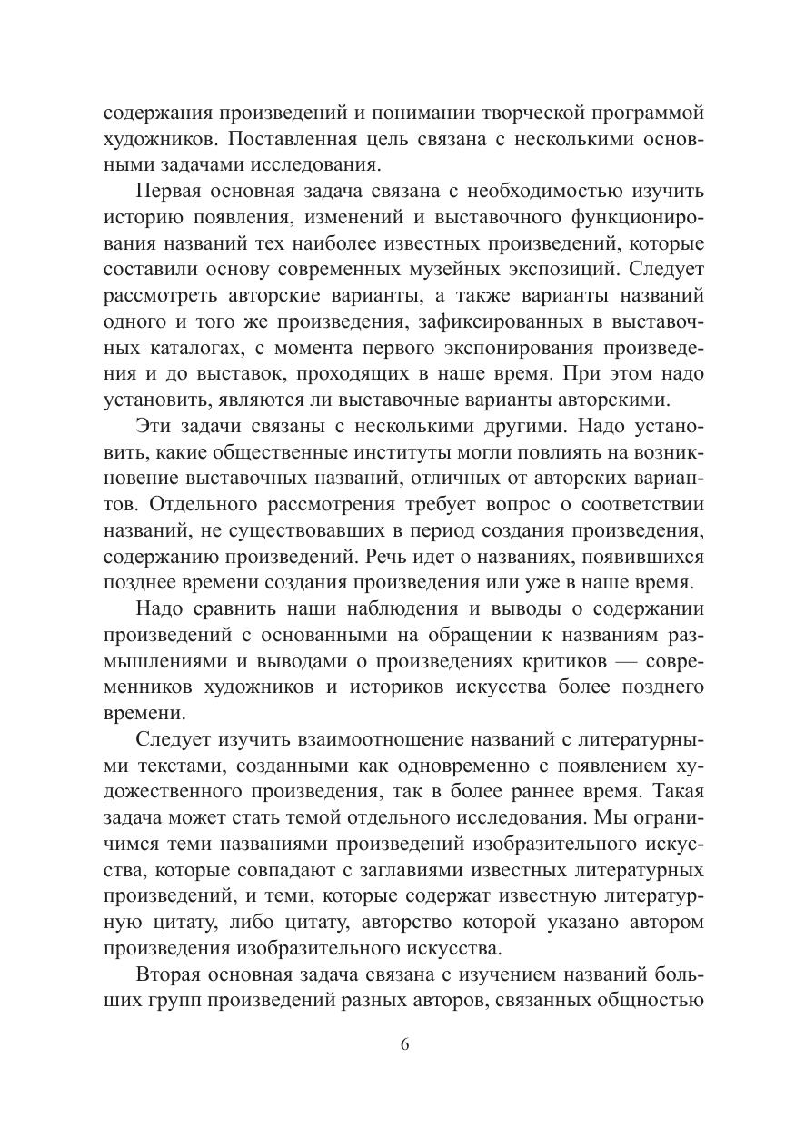 Исследование призвано пересмотреть наиболее востребованный подход к изучению произведений изобразительного искусства, основанный на изучении визуального ряда произведения искусства. Роль названий в изучении содержания произведений на материале русского изобразительного искусства впервые изучена на теоретическом уровне и на примере творчества большого числа авторов, принадлежащих к разным периодам в развитии искусства. Цель исследования — установить роль названий произведений русского изобразительного искусства в понимании содержания произведений и творческой программы художников. Изучение названий произведений изобразительного искусства позволяет делать выводы о содержании произведений, о художественной задаче, которую ставил перед собой автор, о творческой программе художника.