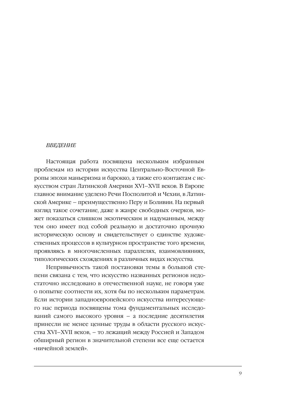 Книга посвящена искусству раннего Нового времени в регионе, еще слабо изученном в отечественном искусствознании, хотя Речь Посполитая, как и Священная Римская империя, в которую входила тогда Чехия, занимали в Европе важное место и уровень их культуры соответствовал политическому статусу. В монографии рассматриваются такие крупные явления, как творчество придворных мастеров императора Рудольфа II, творчество чешского художника ХVII века Карела Шкреты. Анализируются также региональные формы, формировавшие национальную традицию. Искусство региона выступает в "Очерках" в общеевропейском контексте. При этом важное место занимает проблема трансформации европейских образцов в Латинской Америке. Таким образом, расширяется и обогащается представление о "культурном пространстве" Европы ХVI–ХVII веков в его связях с заокеанской культурой; такой аспект проблемы выдвигается впервые.