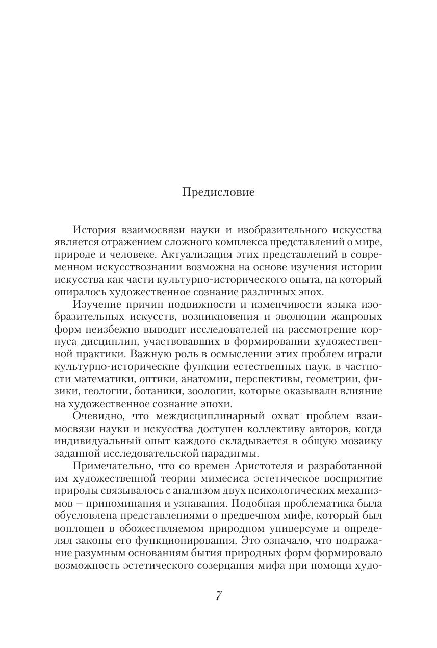 Книга посвящена изучению истории взаимодействия естественных наук и изобразительного искусства. Авторы обращают внимание на пути развития образного языка пейзажа, портрета, натюрморта, декоративно-прикладного и садово-паркового искусства, прослеживают, какую роль в их развитии играли оптика, анатомия, перспектива, геометрия, физика, геология, ботаника, зоология. Читателю предлагается широкий междисциплинарный охват исторических взаимосвязей науки и искусства, позволяющий составить общее представление о путях развития заданной в сборнике исследовательской парадигмы.
