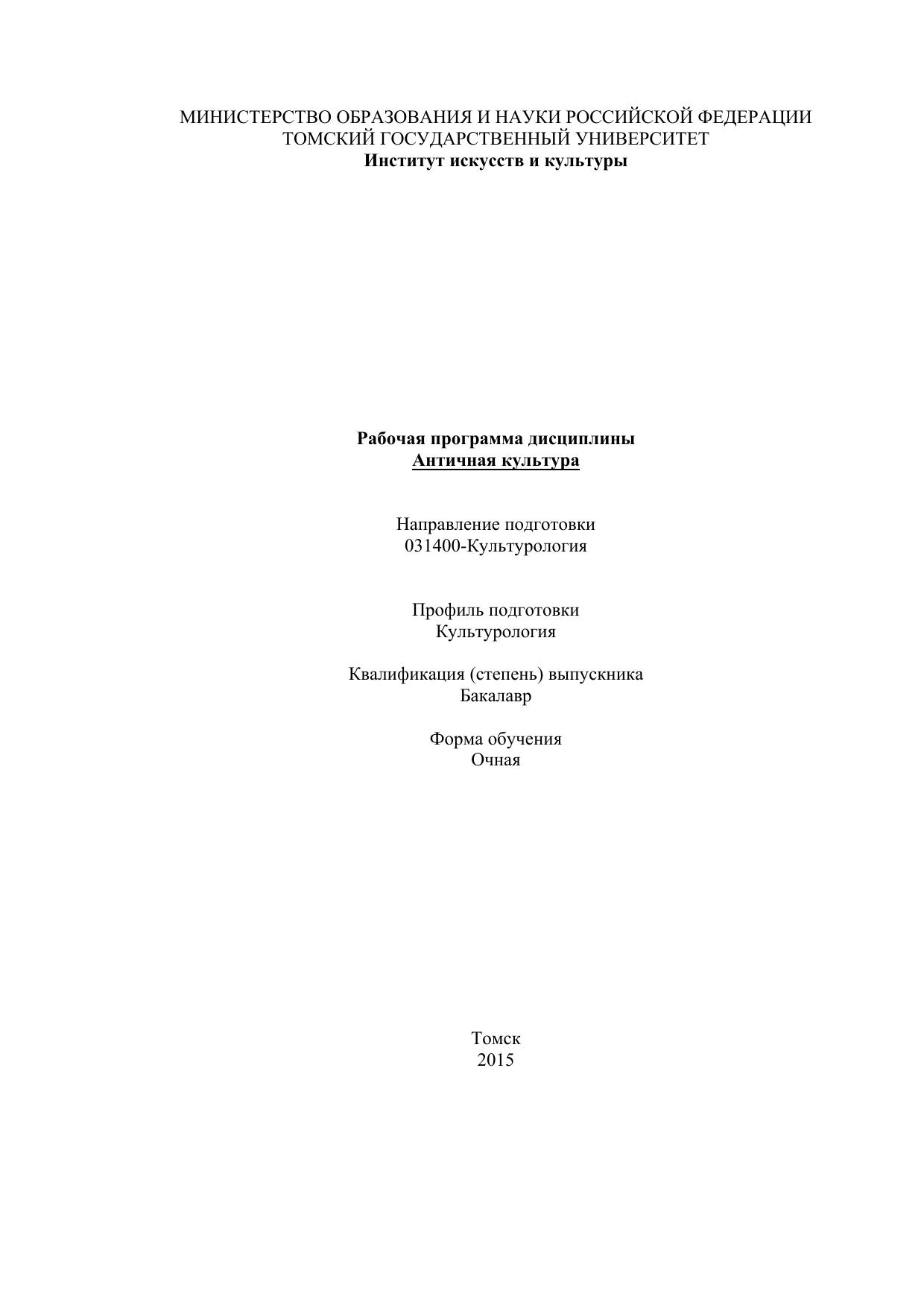 Рабочая программа дисциплины "Античная культура"