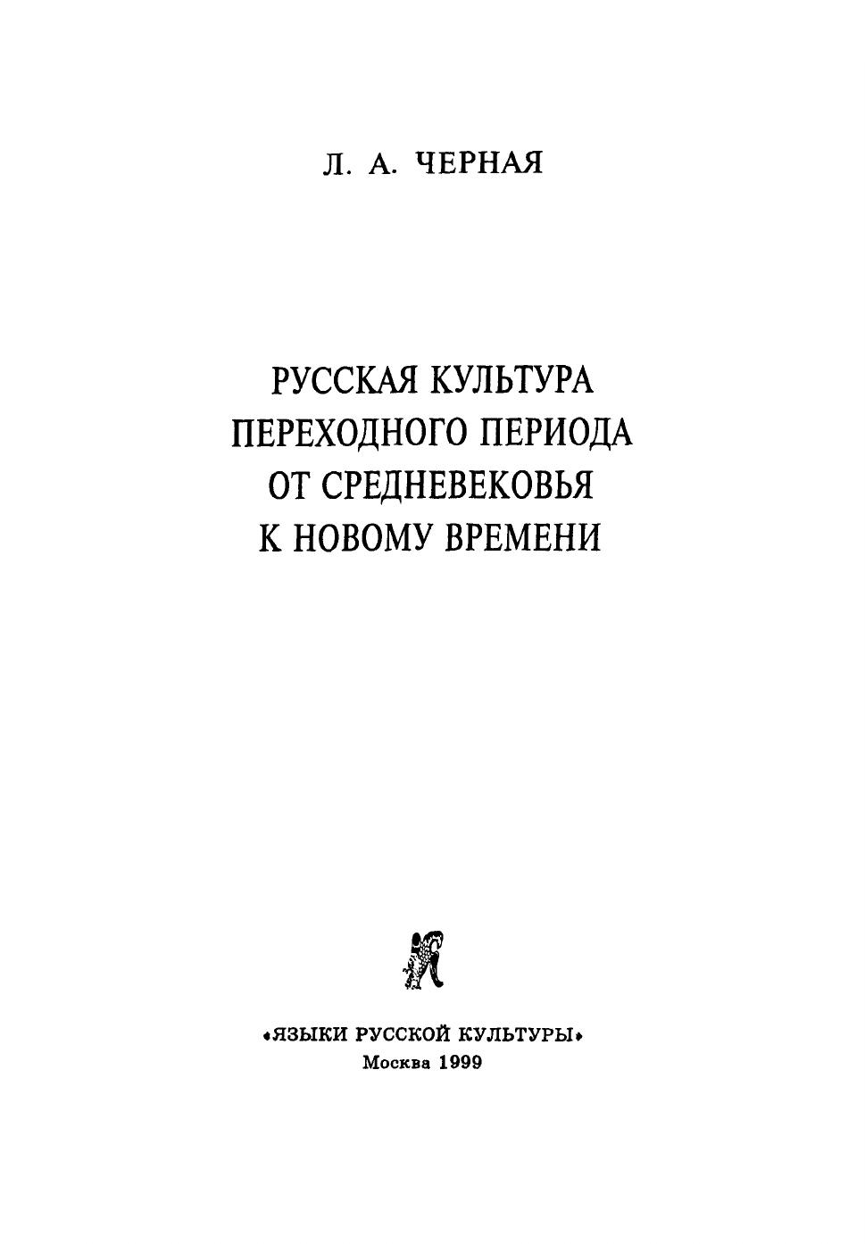 Русская культура переходного периода от Средневековья к Новому времени