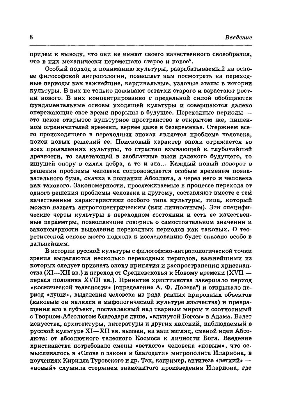 Книга посвящена изучению русской культуры одного из самых интересных, но и наиболее "смутных" периодов в ее истории - перехода от Средневековья к Новому времени. Автор предлагает новый - философско-антропологический - подход, позволяющий иначе посмотреть на многие явления, процессы и проблемы переходной эпохи. В работе предпринята попытка вскрыть механизм перехода в культуре, вызванного новой концепцией человека как такового и реализующегося в конкретных судьбах служилого человека, купца, зодчего, художника, поэта, ученого.