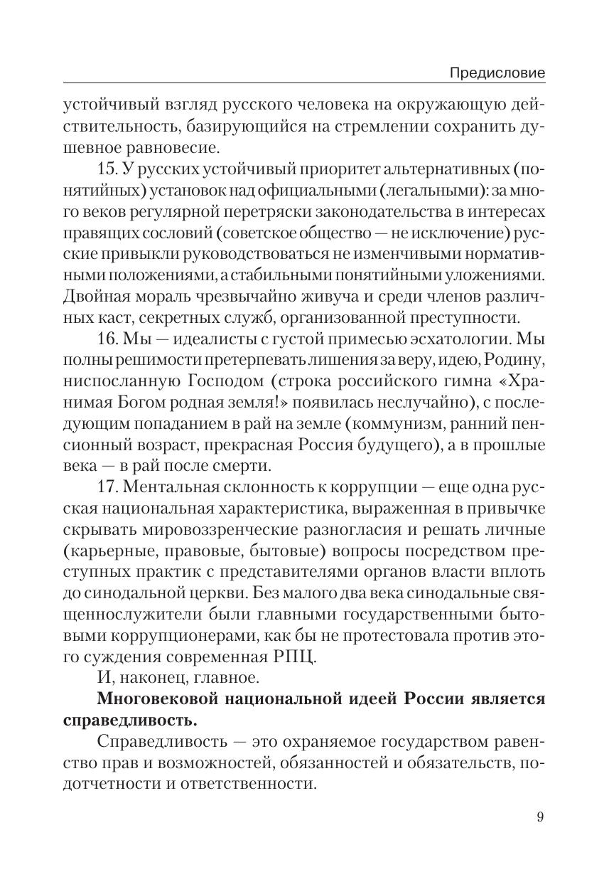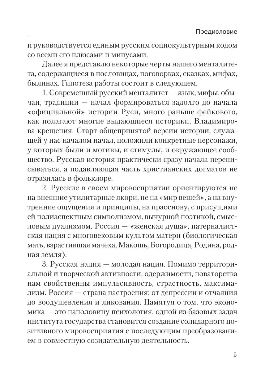 Книга повествует о вечных русских ценностях — справедливости, солидарности, трудолюбии, патриотизме, консерватизме — и при этом ненавязчиво развенчивает бытующие сегодня идеологические, экономические и социальные мифы. Автор регулярно переносит нас в день сегодняшний, где предметно объясняет, почему поступательное развитие экономики — безусловного социального феномена — без привязки к характеру нации невозможно.