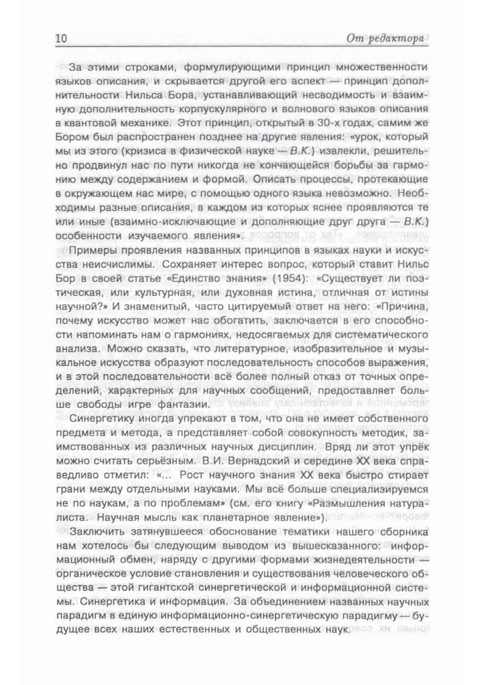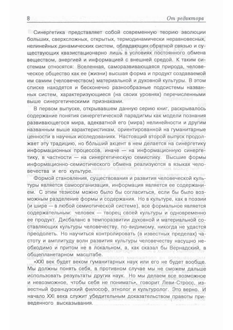Настоящая книга является вторым выпуском издаваемой издательством «Прогресс-Традиция» серии книг под общим названием «Синергетическая парадигма». Предметом серии является проблема самоорганизации в многообразии ее проявлений в природе, духовной и материальной культуре человечества. В сборник вошли материалы недавних международных конференций, проведенных е России, и статьи приглашенных авторов — видных отечественных ученых и деятелей культуры, раскрывающие нелинейный характер комплексных процессов самоорганизации, в том числе информационных, протекающих в сверхсложных системах в материальной и интеллектуальной сферах деятельности человека и требующих объединенного системного подхода со стороны естественных и гуманитарных наук и искусств.