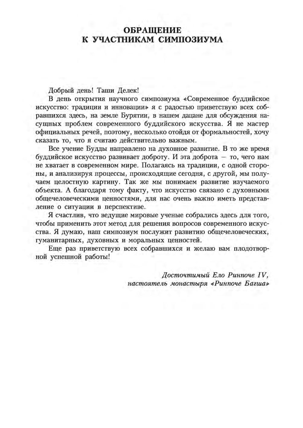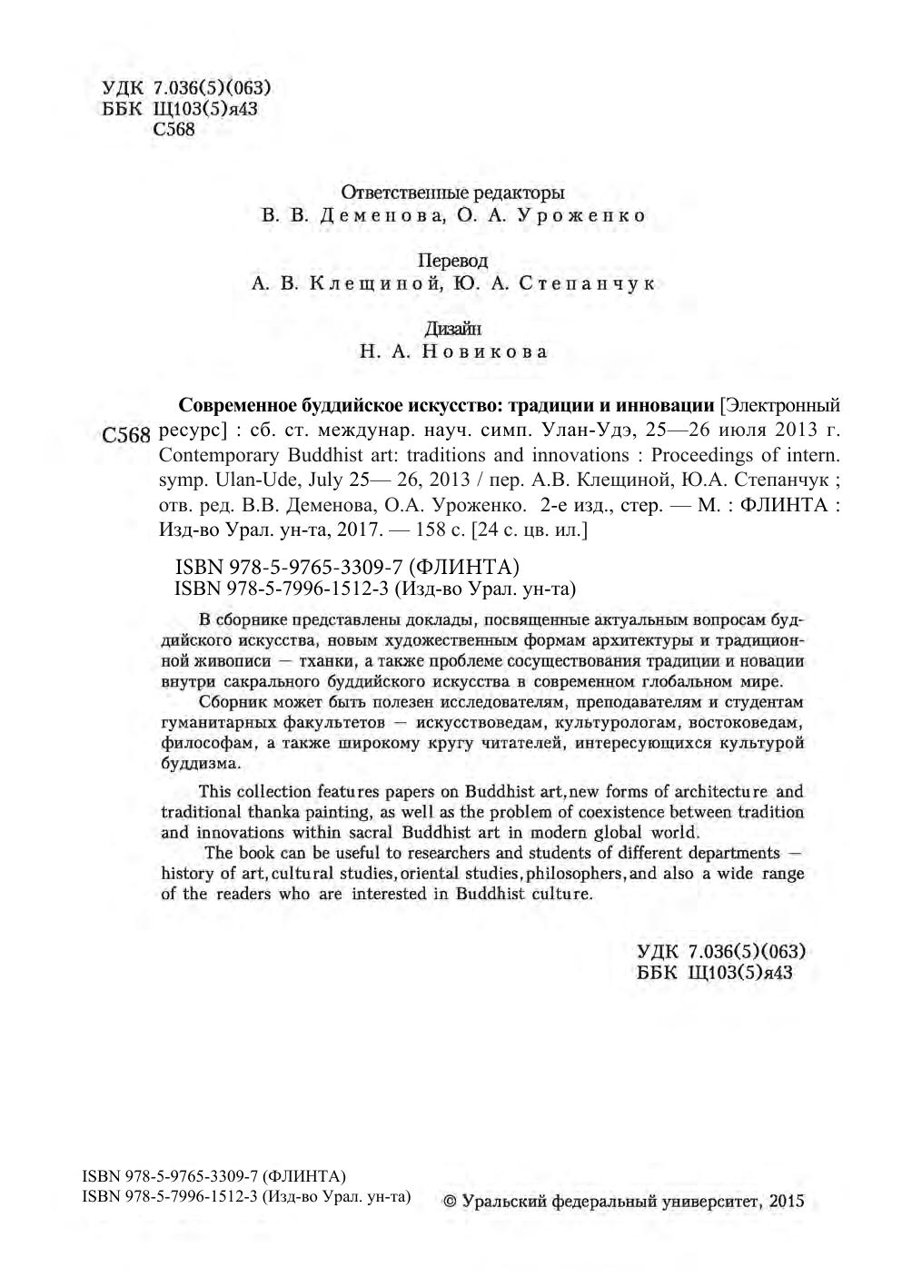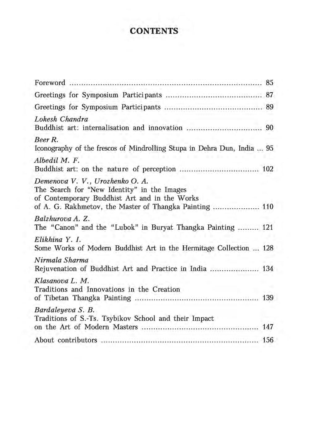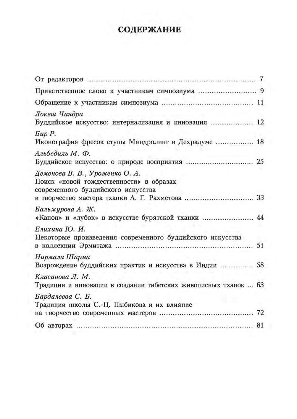 В сборнике представлены доклады, посвященные актуальным вопросам буддийского искусства, новым художественным формам архитектуры и традиционной живописи — тханки, а также проблеме сосуществования традиции и новации внутри сакрального буддийского искусства в современном глобальном мире.