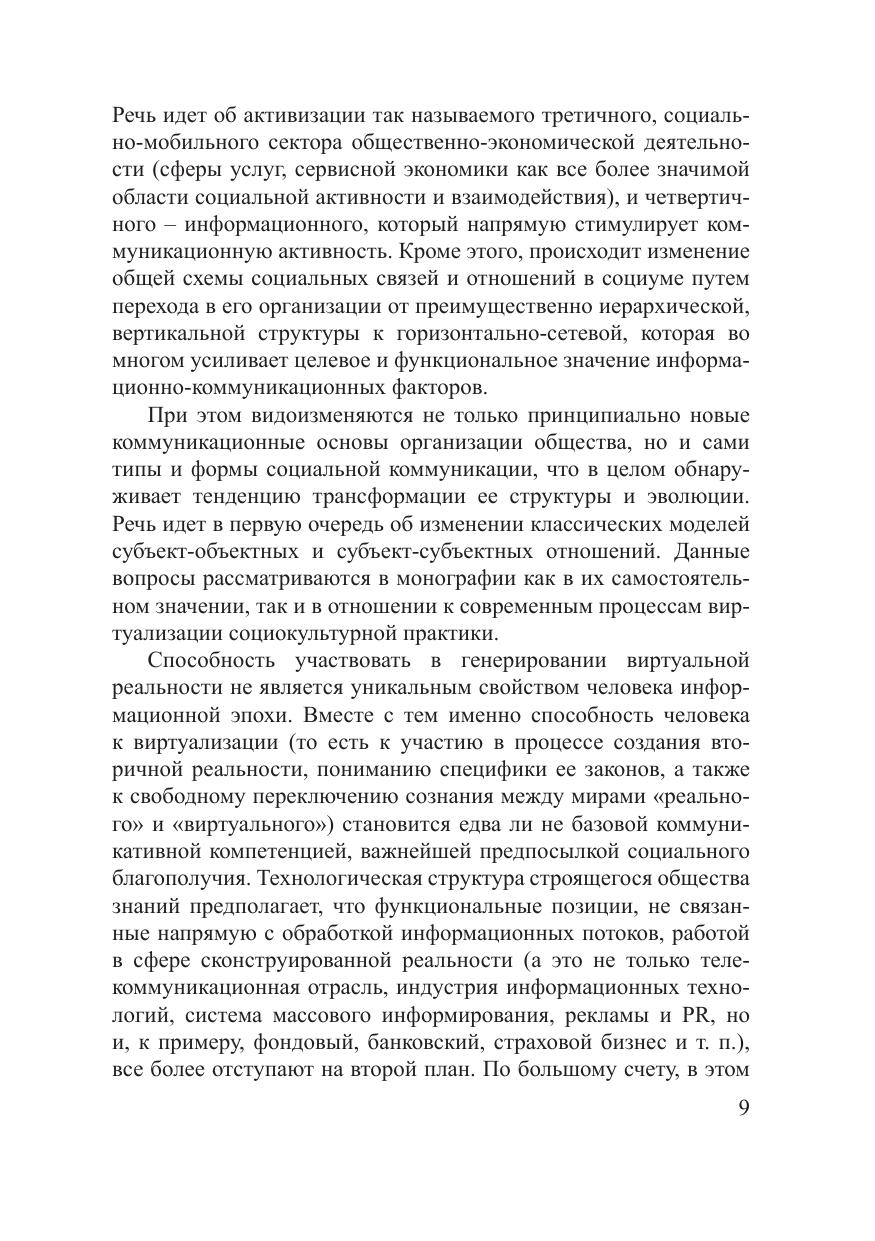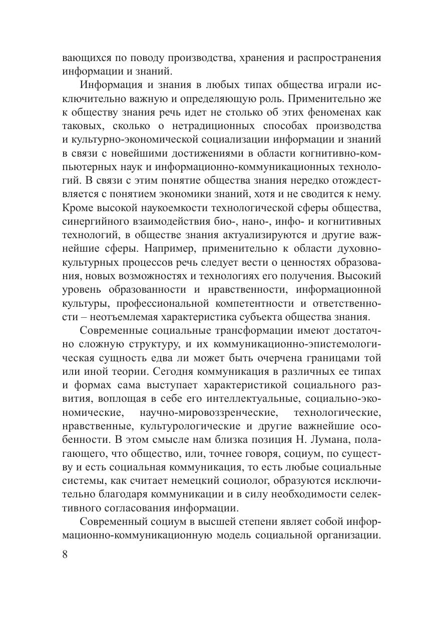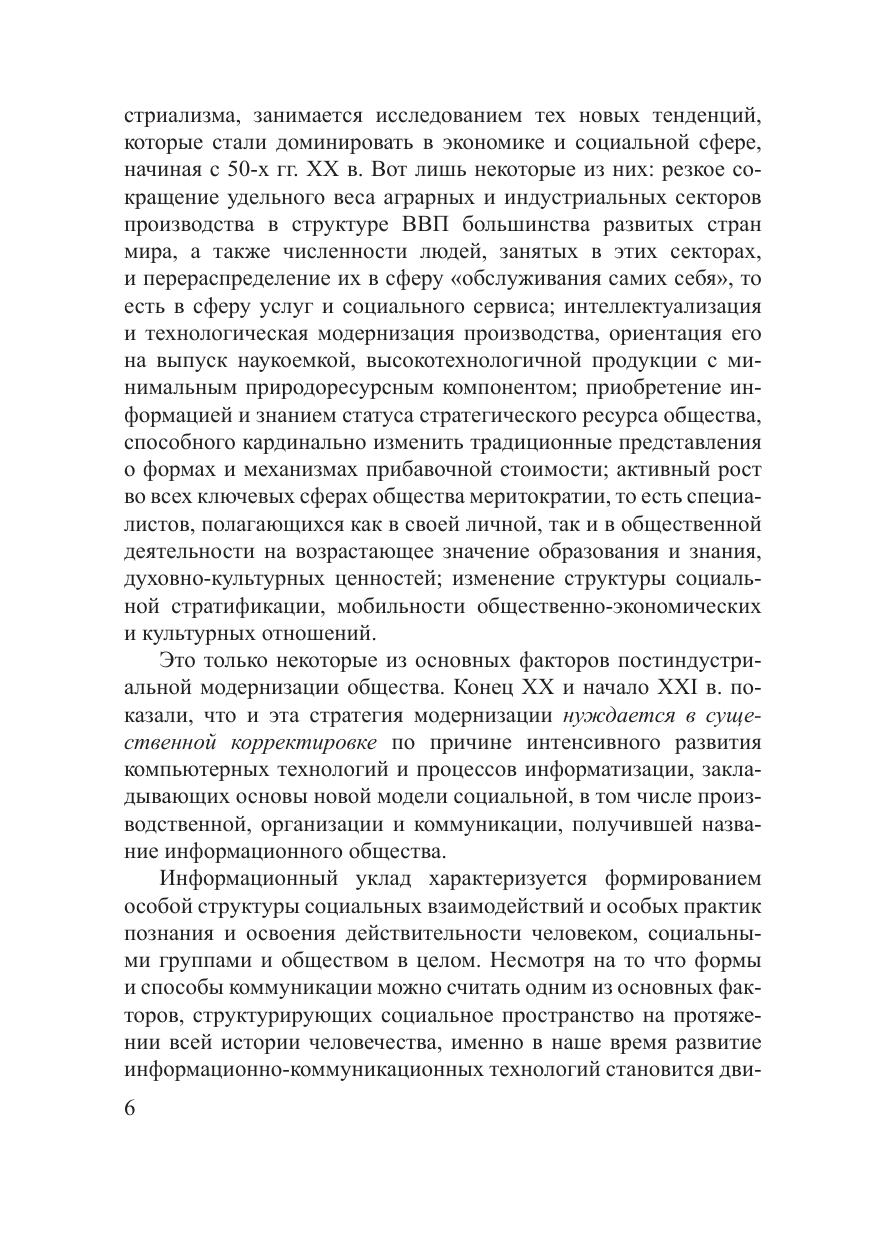 В монографии исследуются актуальные проблемы Современности, обусловленные кризисом гуманитарных ценностей индустриальной эпохи и поиском новых сценариев развития цивилизации и культуры. Излагается позиция автора в отношении ряда дискуссионных вопросов: в каком обществе мы живем – индустриальном, постиндустриальном, информационном, обществе, основанном на знании, каковы «пределы роста» техногенной цивилизации, что ожидает человека в бурноразвивающемся мире техники, информации, интернет-технологий, виртуальной реальности, насколько возможны и эффективны инструменты управления информационно-коммуникационной средой и др. Обосновывается комплекс теоретико-методологических и практических средств становления и перспективного развития информационного общества, в том числе и в Республике Беларусь. Адресуется ученым, специалистам органов государственной власти и управления, работникам учреждений образования и культуры, аспирантам, магистрантам и студентам, а также всем тем, кто интересуется современными тенденциями социальной динамики.
