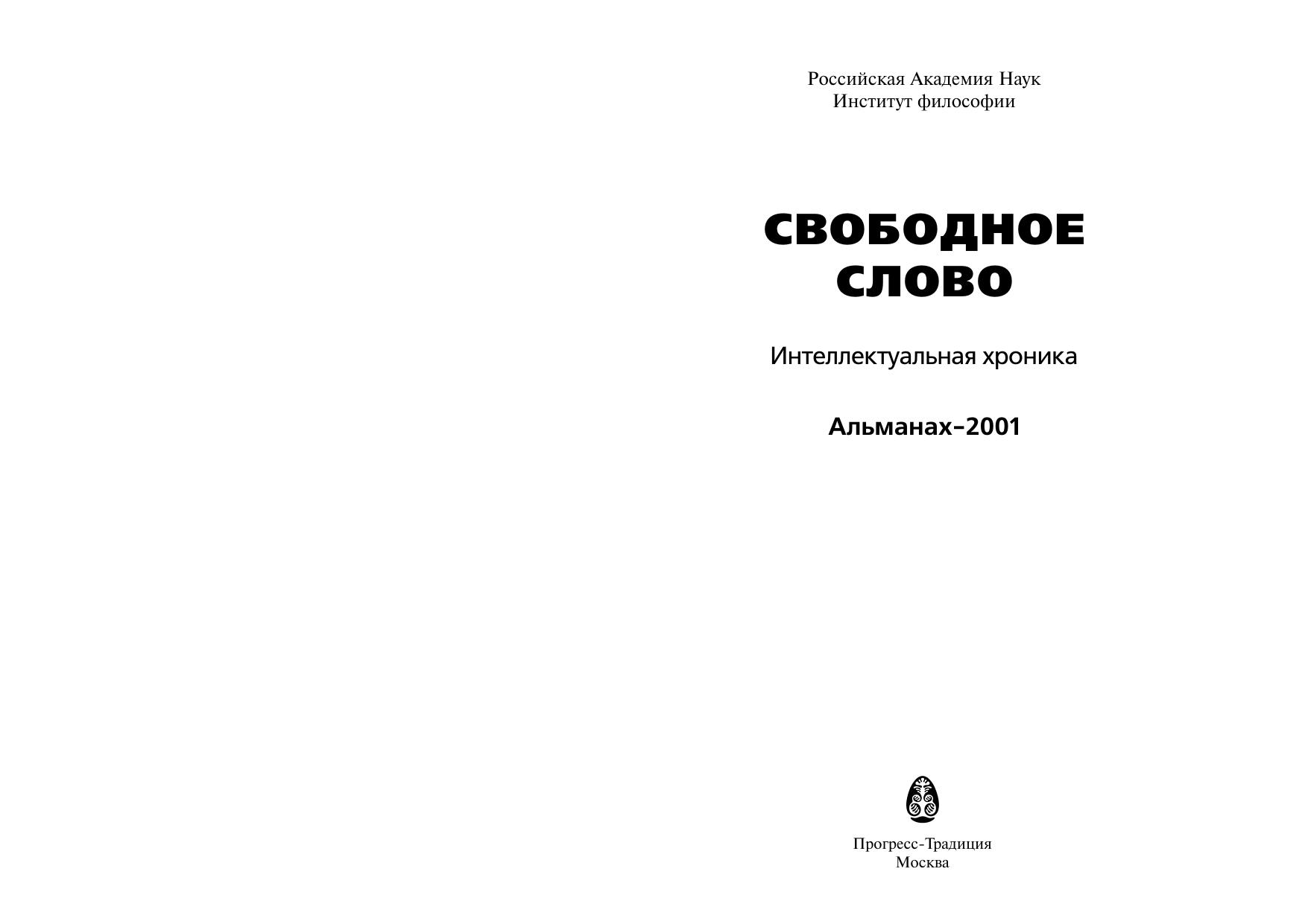 Свободное слово: Интеллектуальная хроника. Альманах 2001