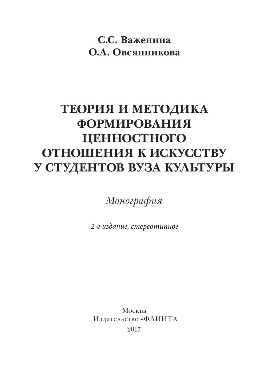 Теория и методика формирования ценностного отношения к искусству у студентов вуза культуры
