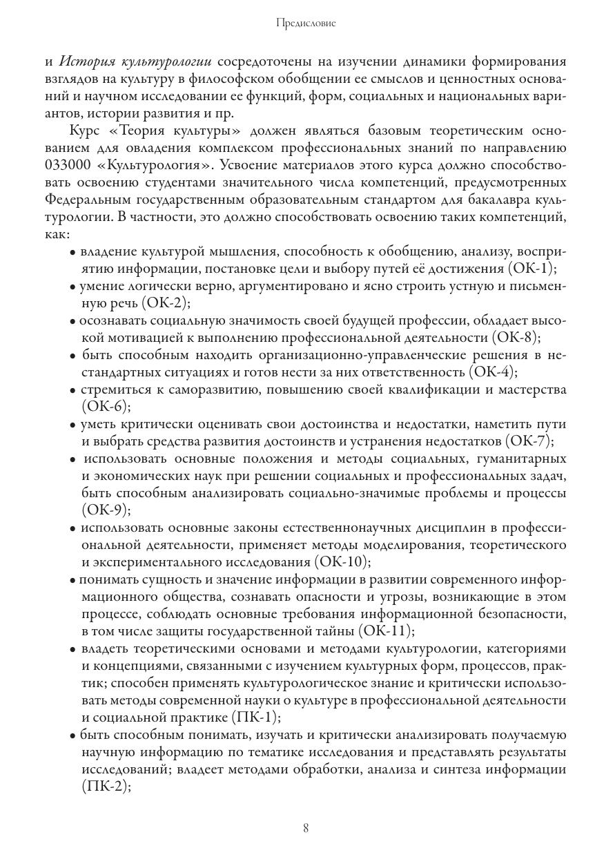 Учебное пособие подготовлено в соответствии с требованиями Федерального образовательного стандарта и содержит основные положения теории культуры, соответствующие современному научному пониманию предмета, сущности культуры, ее функций, морфологии и типологии, динамики, форм, антропологических и социальных свойств. Учебное пособие предназначено для студентов бакалавров вузов, обучающихся по направлению «Культурология».