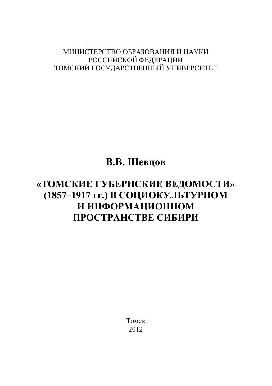 Томские губернские ведомости (1857–1917 гг.) в социокультурном и информационном пространстве Сибири