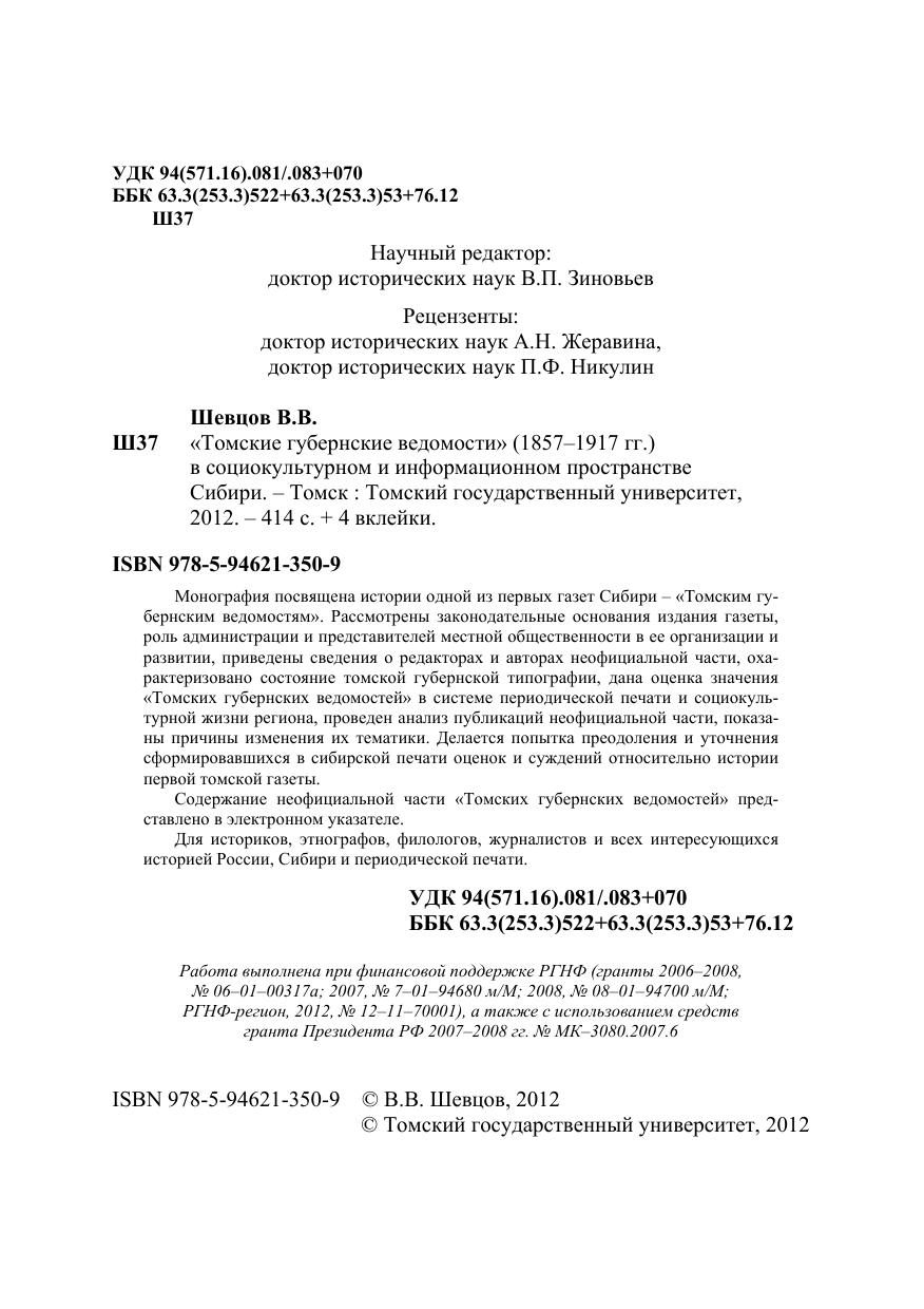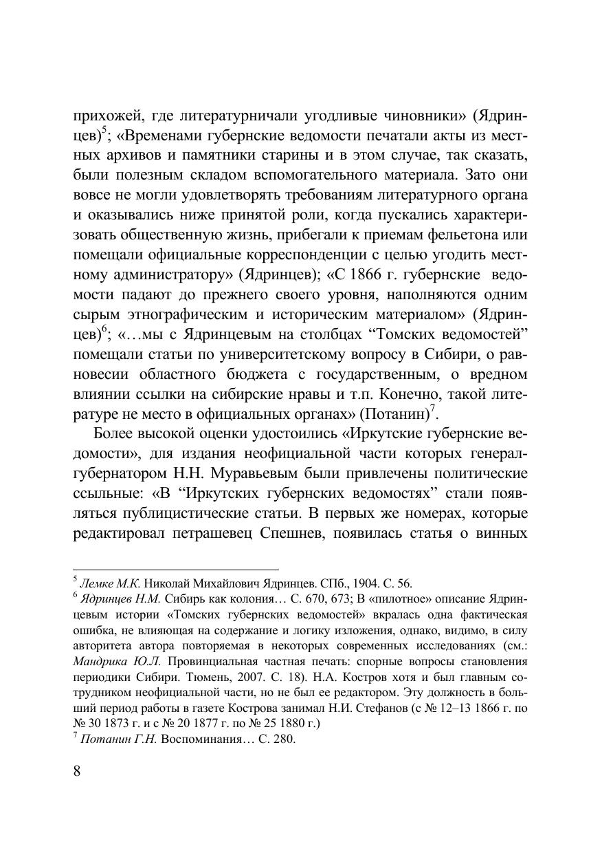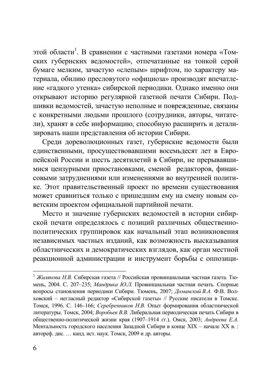 Монография посвящена истории одной из первых газет Сибири – «Томским губернским ведомостям». Рассмотрены законодательные основания издания газеты, роль администрации и представителей местной общественности в ее организации и развитии, приведены сведения о редакторах и авторах неофициальной части, охарактеризовано состояние томской губернской типографии, дана оценка значения «Томских губернских ведомостей» в системе периодической печати и социокультурной жизни региона, проведен анализ публикаций неофициальной части, показаны причины изменения их тематики. Делается попытка преодоления и уточнения сформировавшихся в сибирской печати оценок и суждений относительно истории первой томской газеты. Содержание неофициальной части «Томских губернских ведомостей» представлено в электронном указателе. Для историков, этнографов, филологов, журналистов и всех интересующихся историей России, Сибири и периодической печати.