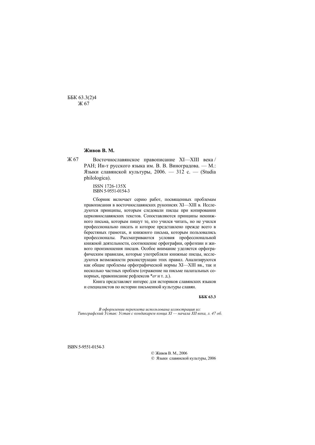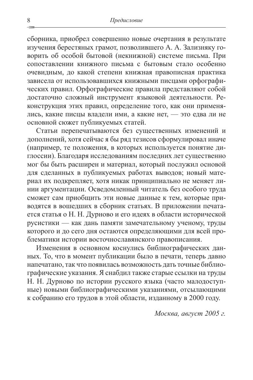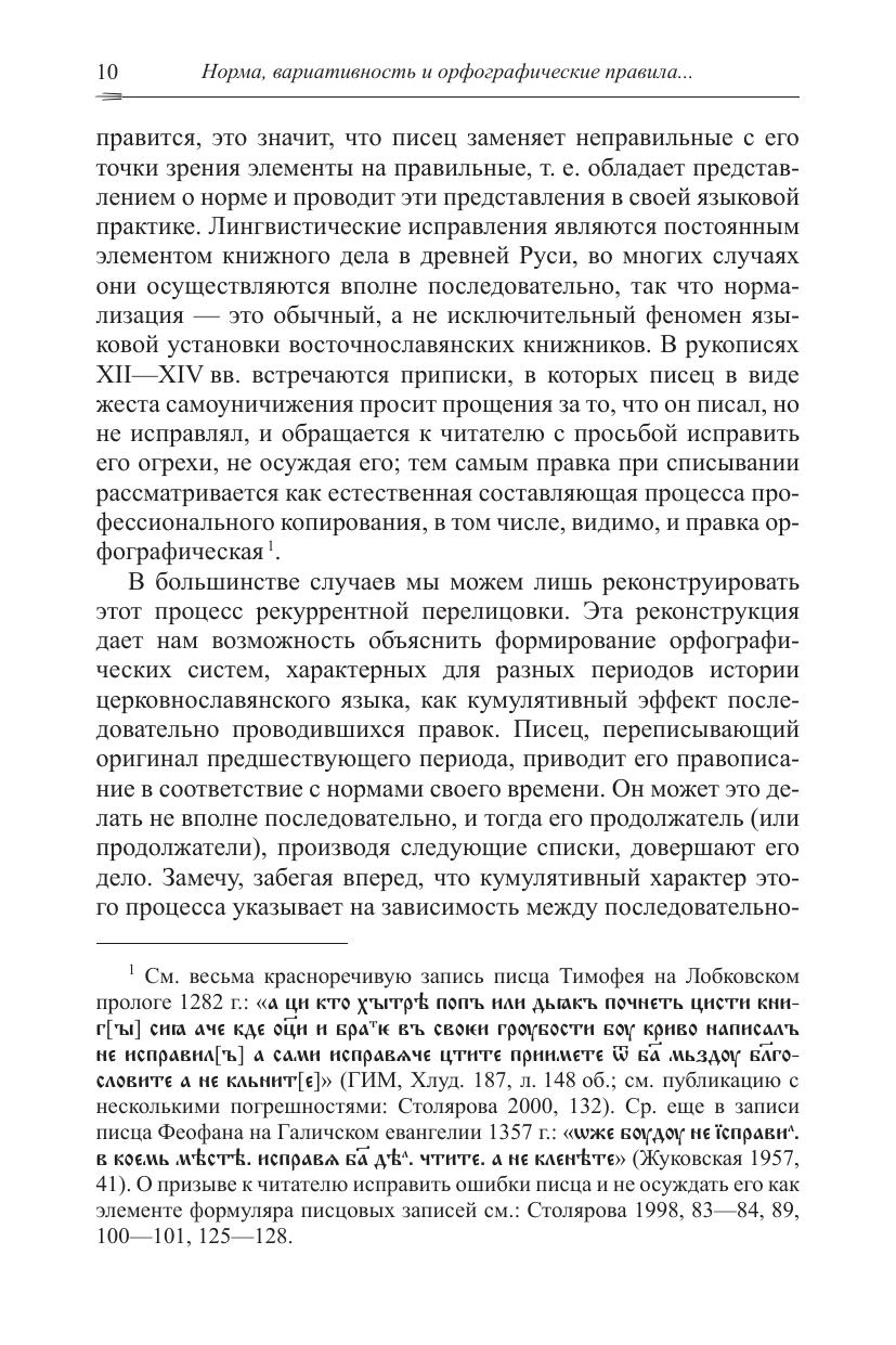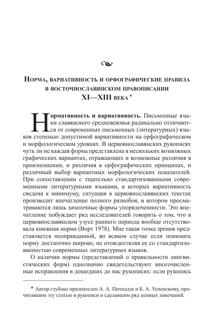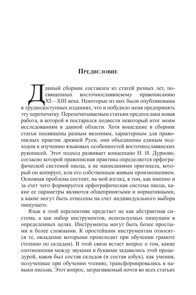 Сборник включает серию работ, посвященных проблемам правописания в восточнославянских рукописях XI-XIII в. Исследуются принципы, которым следовали писцы при копировании церковнославянских текстов. Сопоставляются принципы некнижного письма, которым пишут те, кто учился читать, но не учился профессионально писать и которое представлено, прежде всего, в берестяных грамотах, и книжного письма, которым пользовались профессионалы. Рассматриваются условия профессиональной книжной деятельности, соотношение орфографии, орфоэпии и живого произношения писцов. Особое внимание уделяется орфографическим правилам, которые употребляли книжные писцы, исследуются возможности реконструкции этих правил. Анализируются как общие проблемы орфографической нормы XI-XIII вв., так и несколько частных проблем (отражение на письме палатальных сонорных, правописание рефлексов *er. и т.д.) Книга представляет интерес для историков славянских языков и специалистов по истории письменной культуры славян.