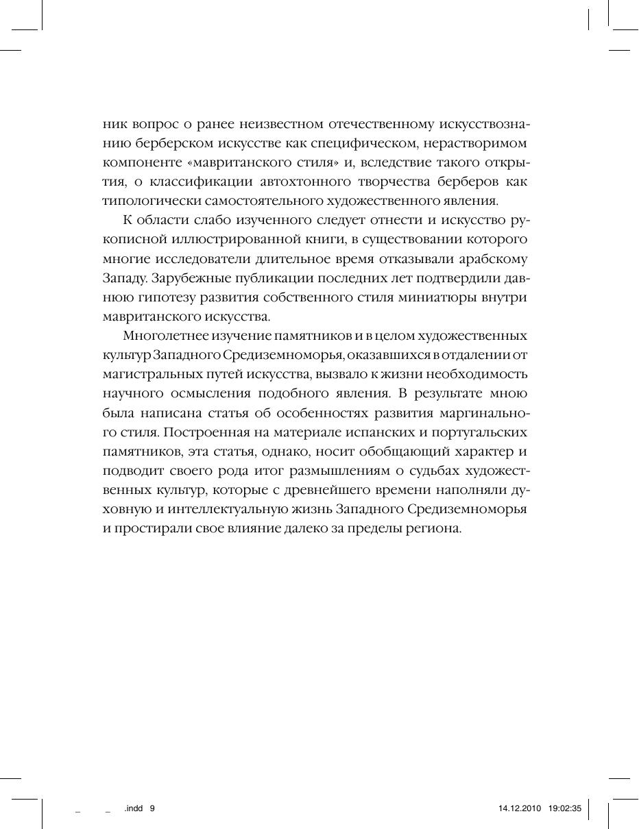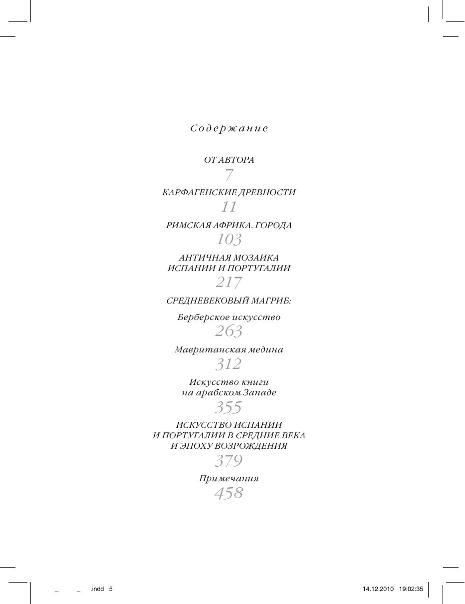 Помимо впервые опубликованных на русском языке материалов об искусстве стран Северной Африки и Пиренейского полуострова книга содержит главы, посвященные уникальным художественным явлениям этого региона, возникшим в результате взаимодействия местных и привнесенных извне традиций.