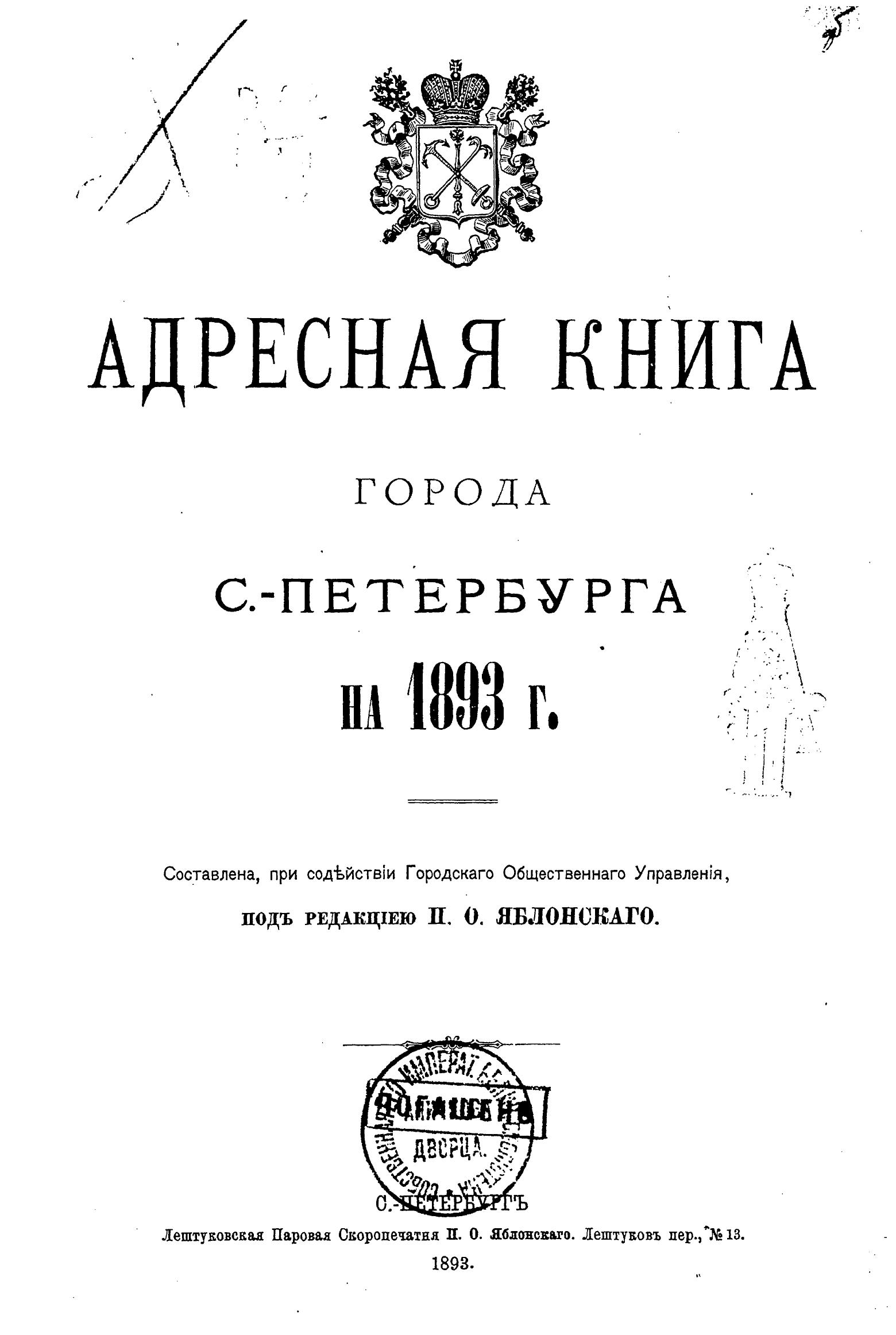 Адресная книга города С.-Петербурга на 1893 г. [2-й г. изд.] Городское общественное управление; Петербургская городская управа