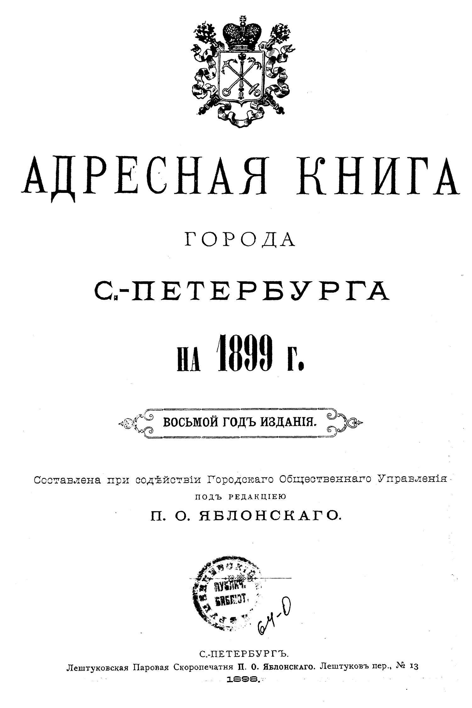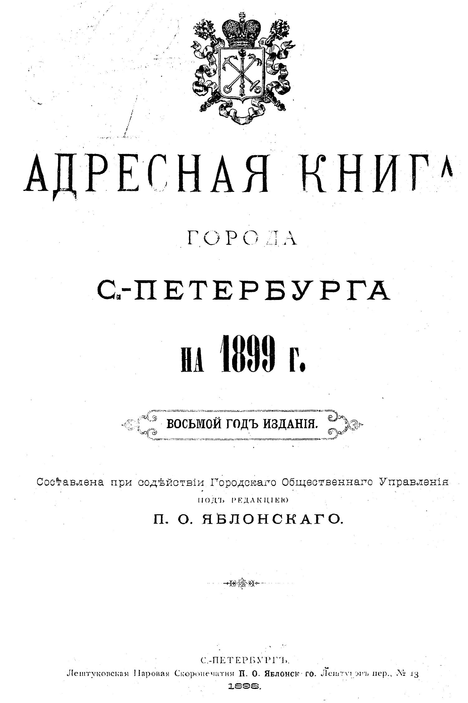 Адресная книга города С.-Петербурга на 1899 г. [8-й г. изд.] Городское общественное управление; Петербургская городская управа