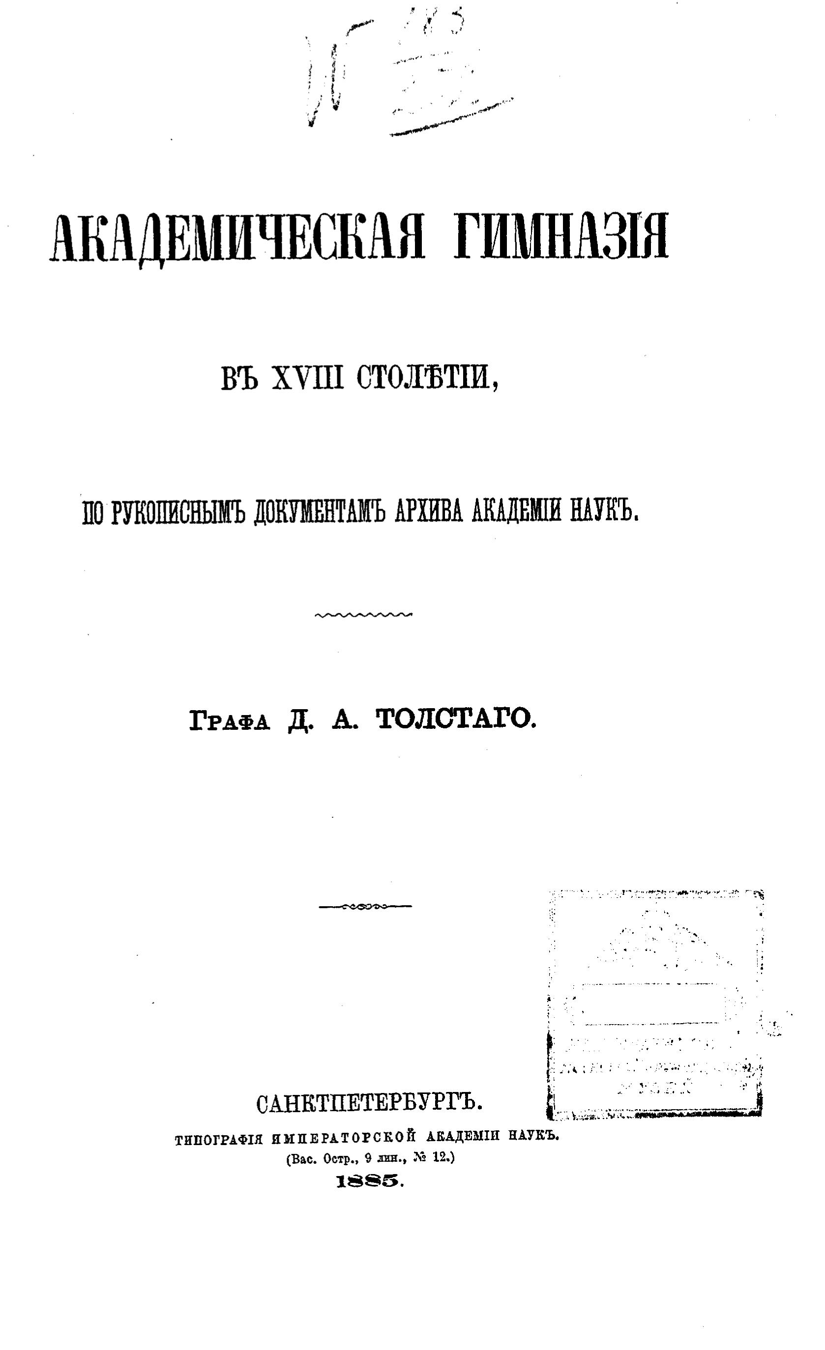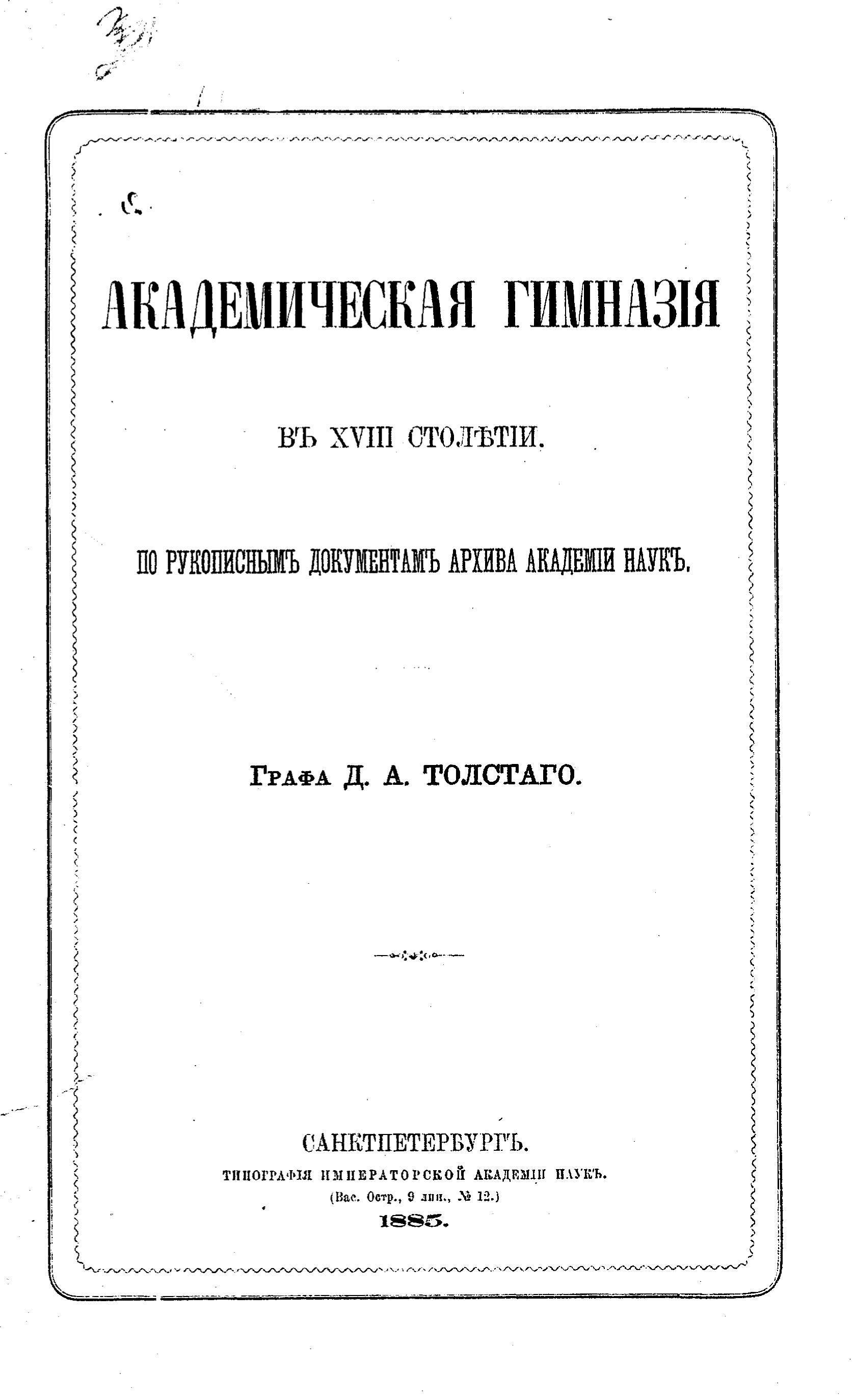 Академическая гимназия в XVIII столетии, по рукописным документам архива Академии наук