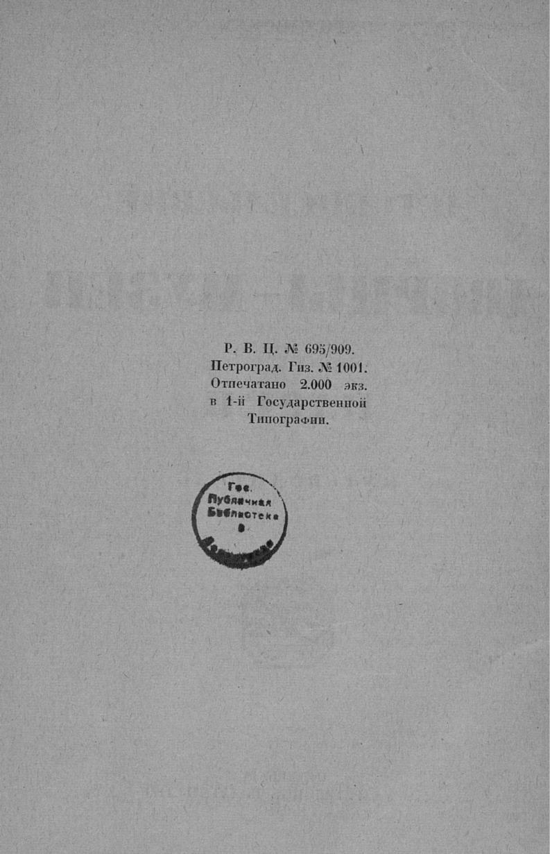 Перешедшие в общественное достояние материалы электронного фонда ЦГПБ им. В.В. Маяковского. Сведения о издательстве или типографии: Гос. изд-во. Место издания: Пг.
