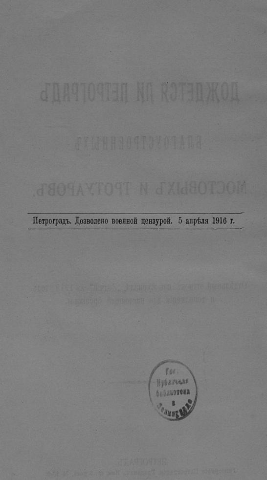 Перешедшие в общественное достояние материалы электронного фонда ЦГПБ им. В.В. Маяковского. Сведения о издательстве или типографии: тип. Пг. Градонач.. Место издания: Пг.