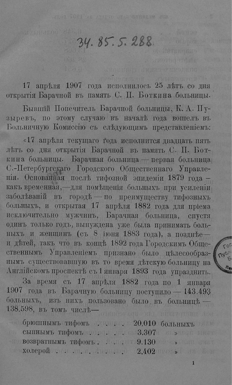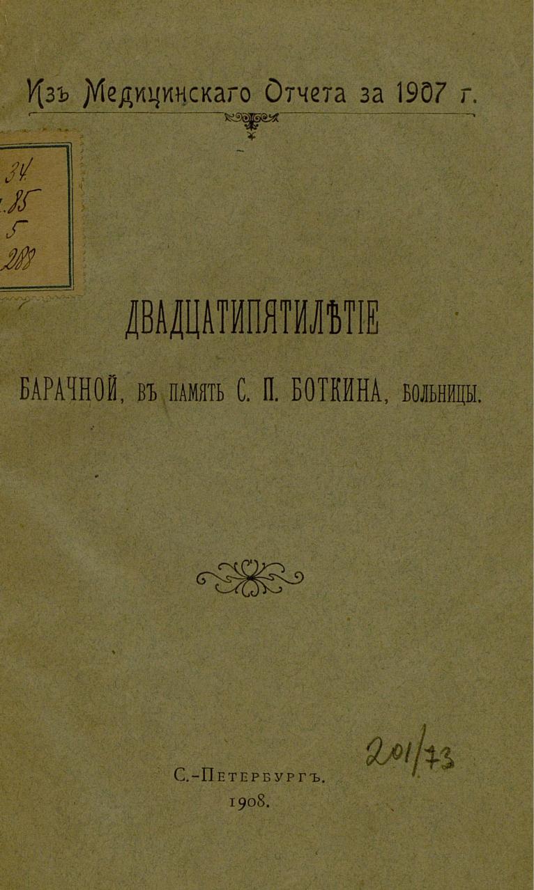Двадцатипятилетие Барачной, в память С. П. Боткина, больницы