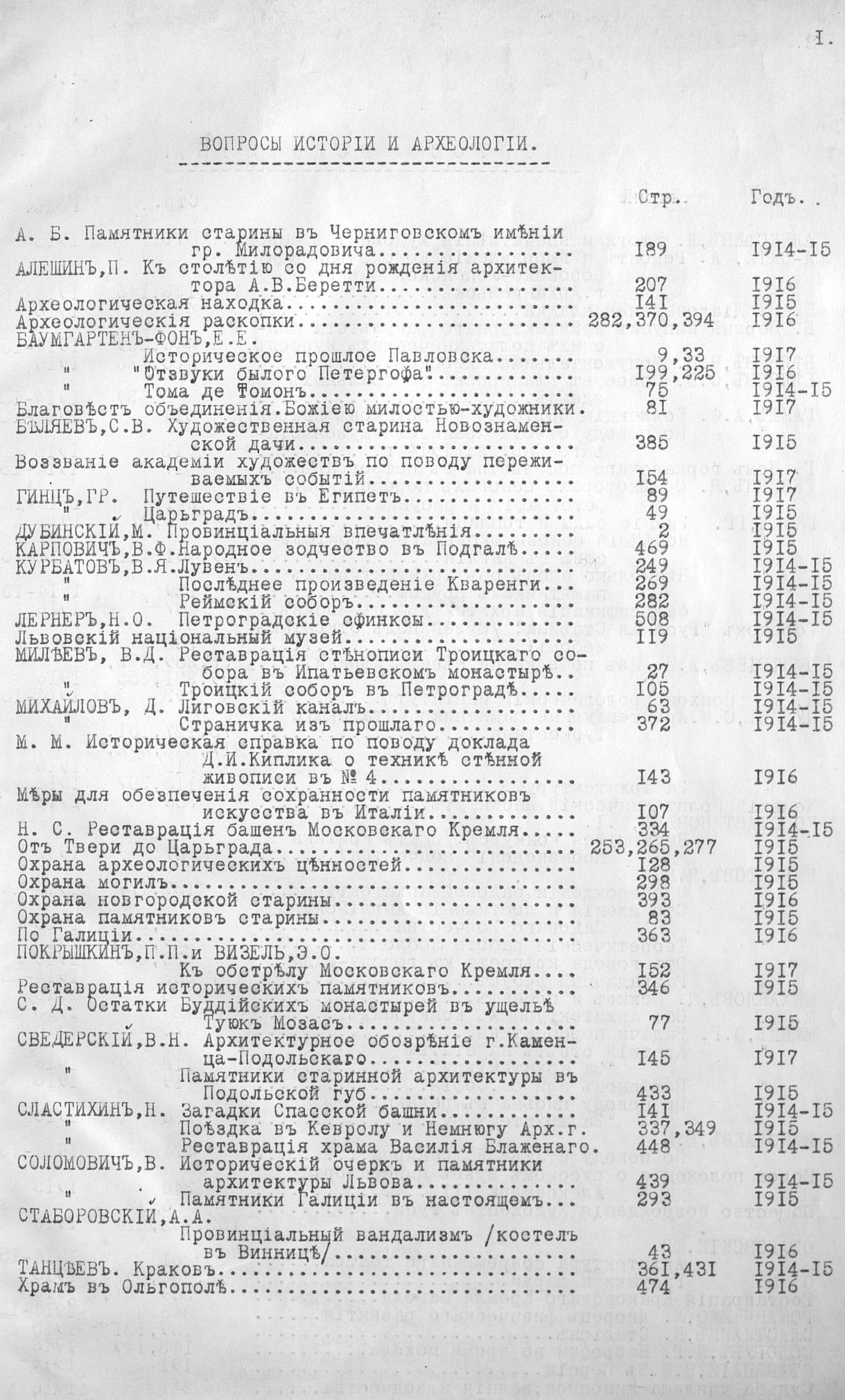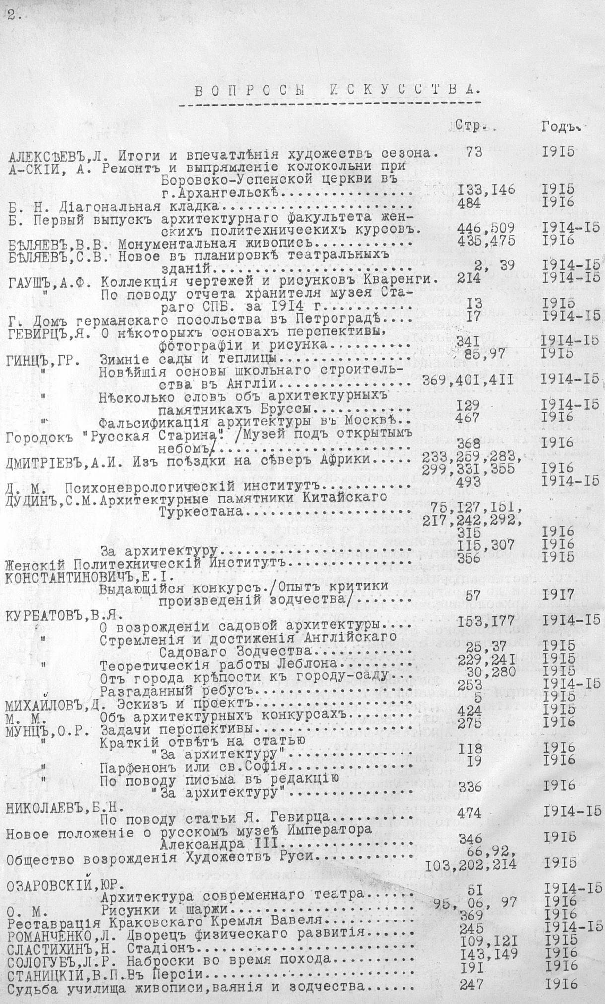 Еженедельник Общества архитекторов-художников : Системат. указатель черт. и рис. помещенных в журн. с 1914 по 1917 год.
