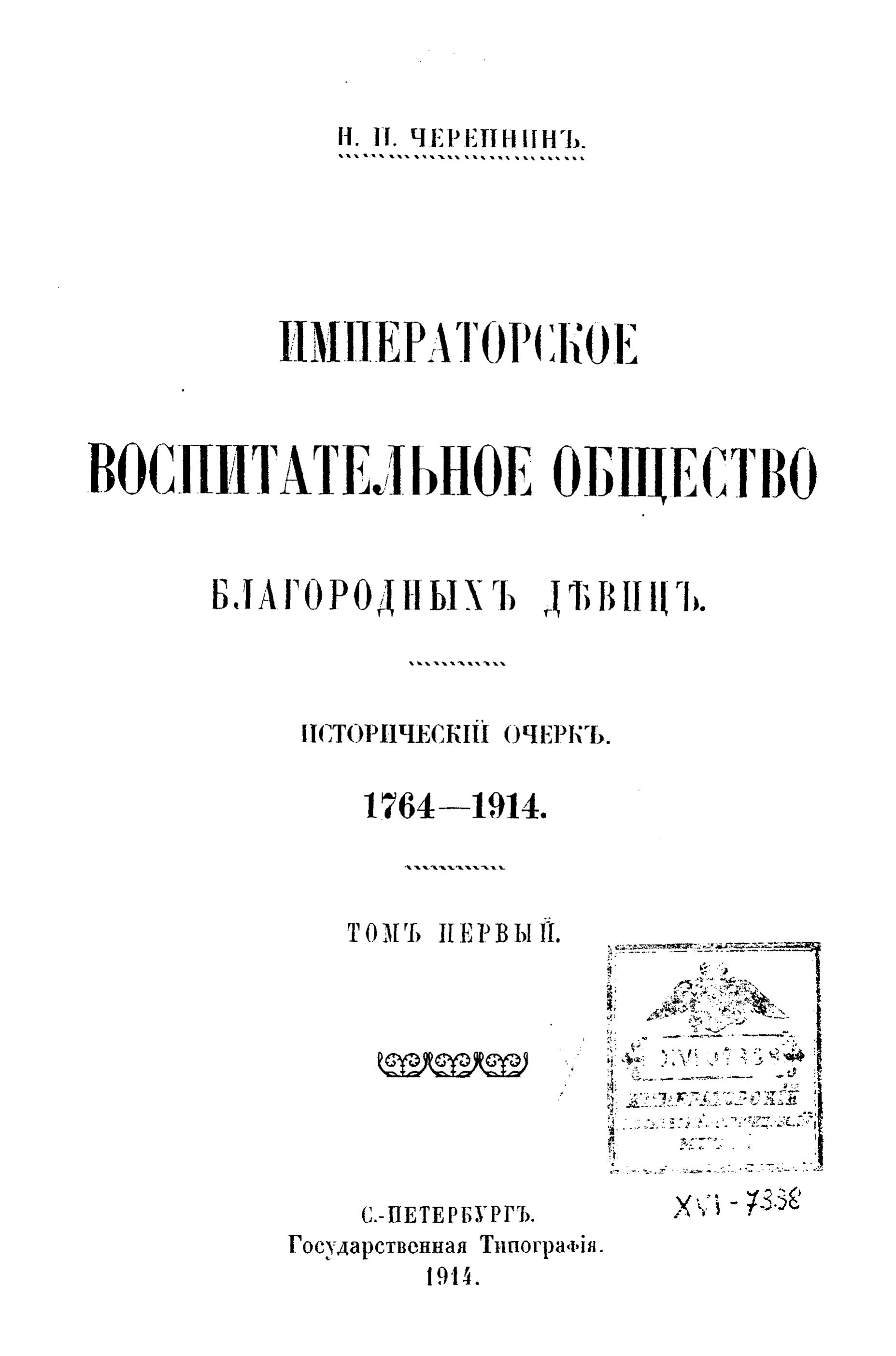 Императорское Воспитательное Общество благородных девиц. Том 1