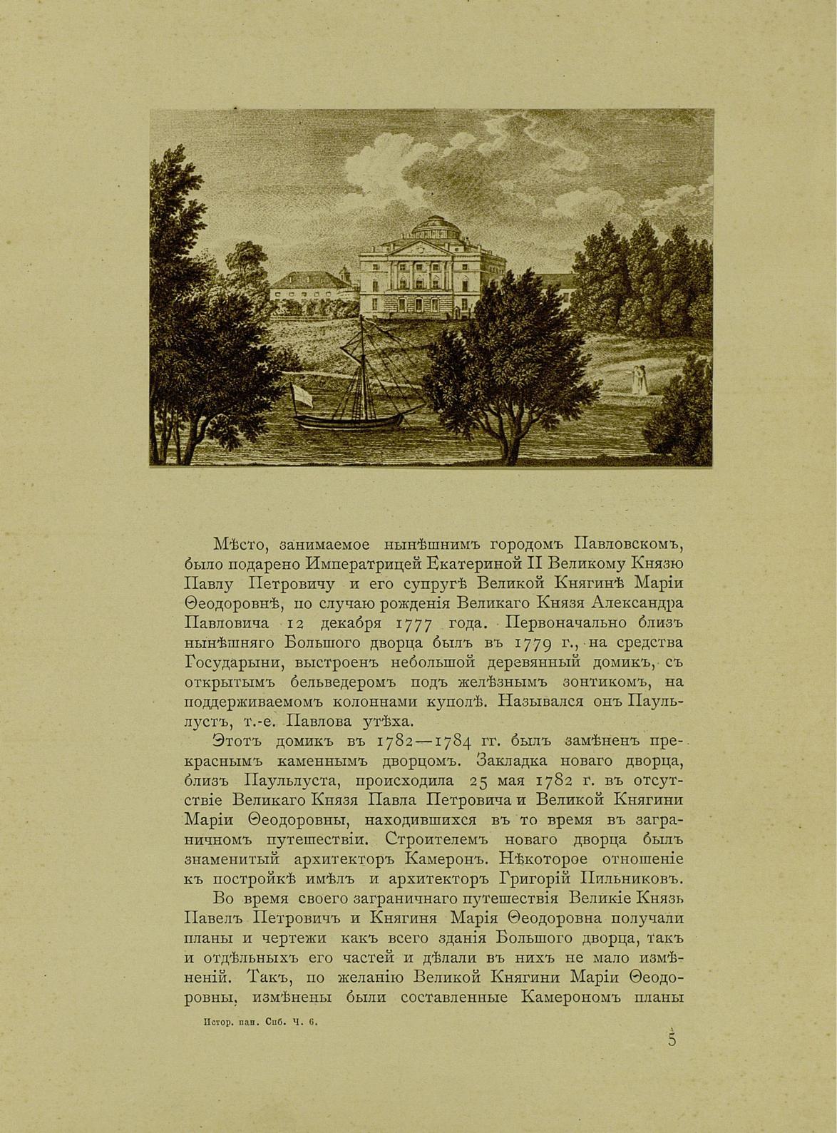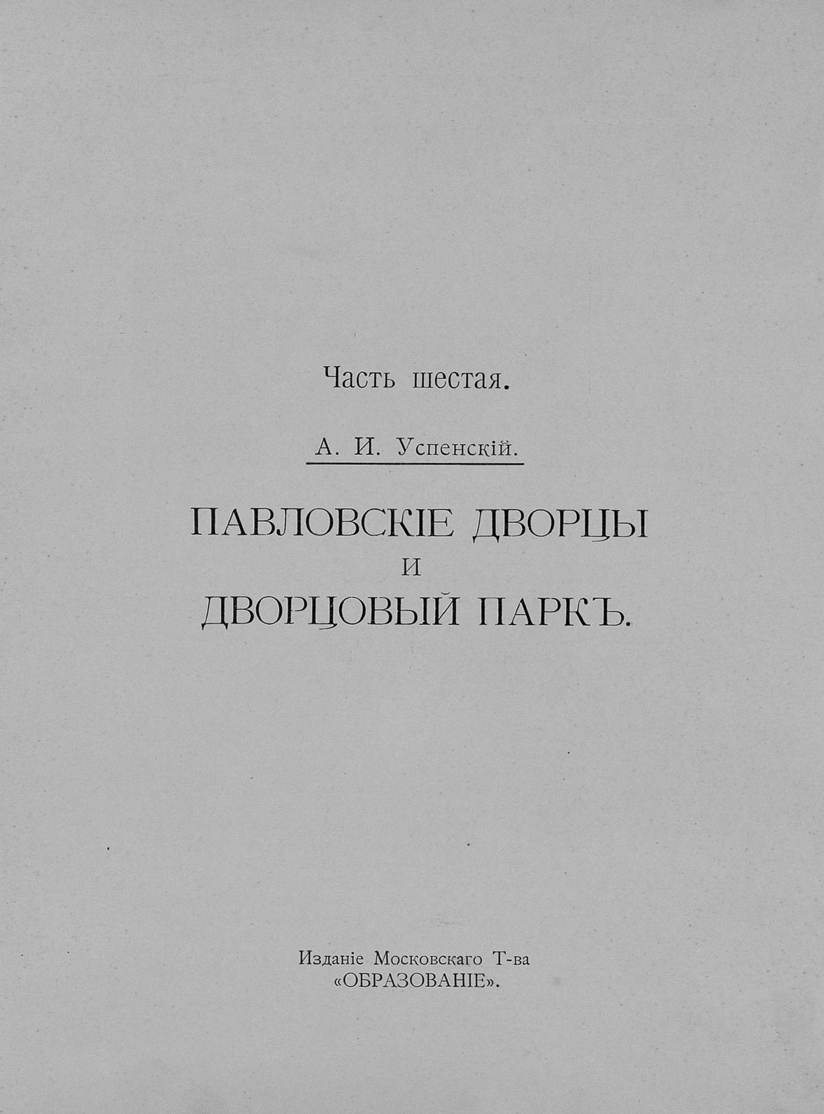 Историческая панорама Санкт-Петербурга и его окрестностей Ч. 6 : Павловские дворцы и дворцовый парк А. И. Успенский