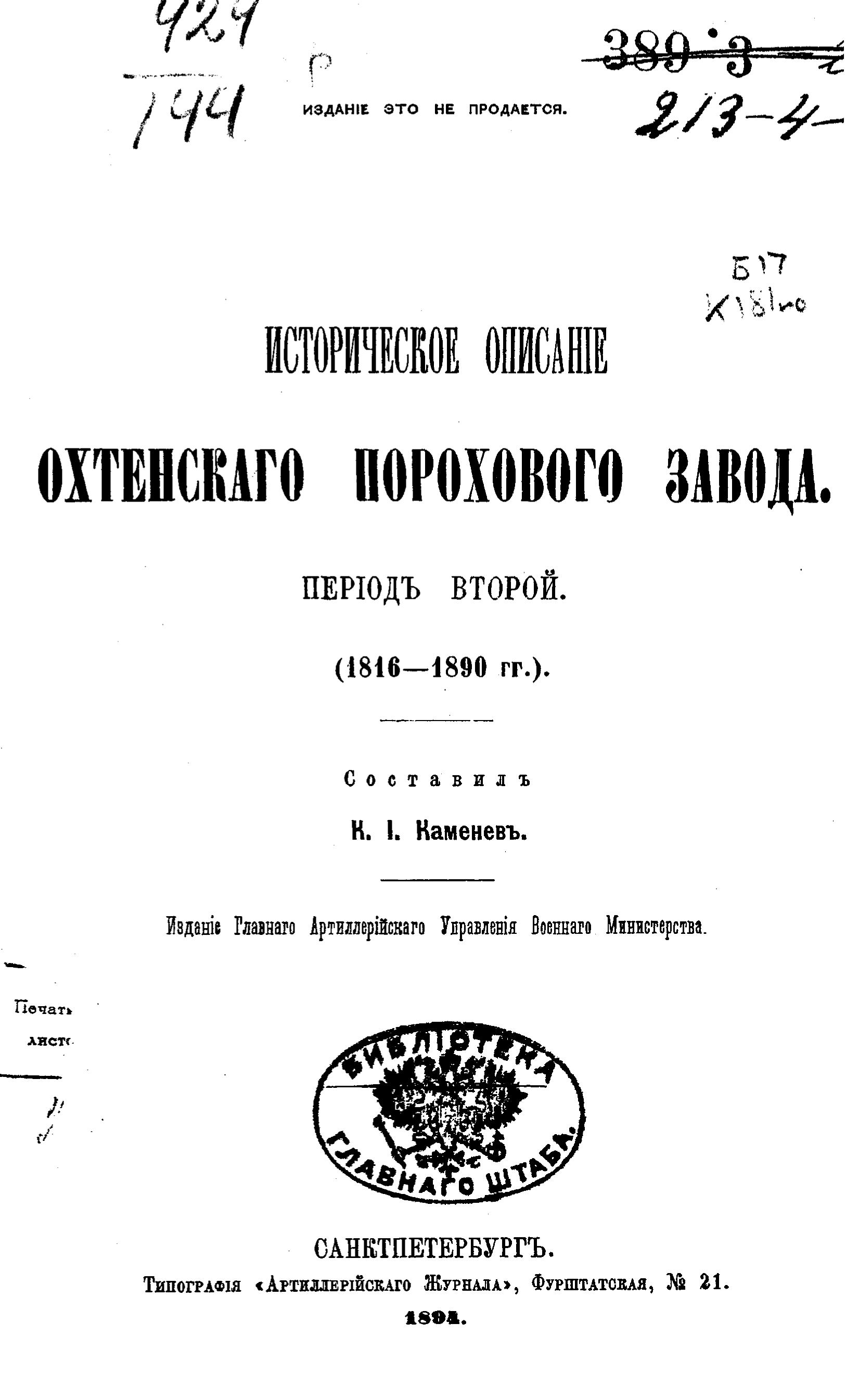Перешедшие в общественное достояние материалы электронного фонда ЦГПБ им. В.В. Маяковского. Сведения о издательстве или типографии: тип. Артилл. Управл.. Место издания: СПб.