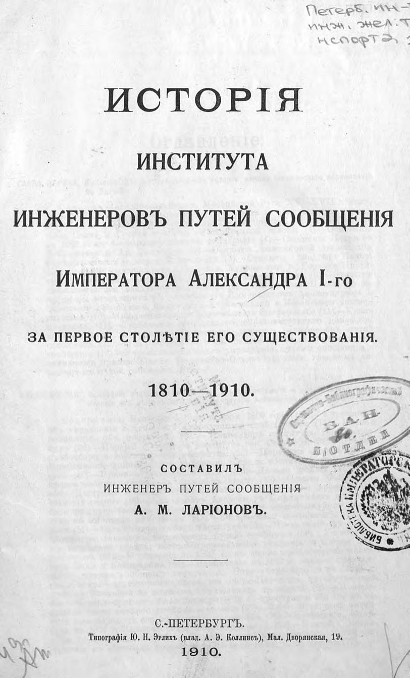 История Института инженеров путей сообщения Императора Александра I-го за первое столетие его существования. 1810-1910