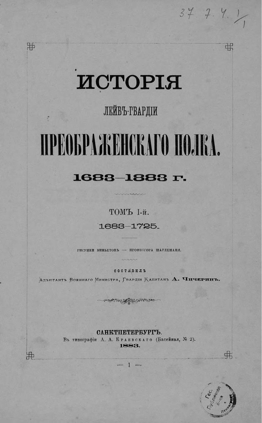 Перешедшие в общественное достояние материалы электронного фонда ЦГПБ им. В.В. Маяковского. Сведения о издательстве или типографии: изд. л.-гв. Преображенского полка. Место издания: СПб.
