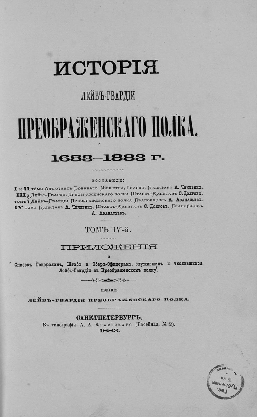 Перешедшие в общественное достояние материалы электронного фонда ЦГПБ им. В.В. Маяковского. Сведения о издательстве или типографии: изд. л.-гв. Преображенского полка. Место издания: СПб.