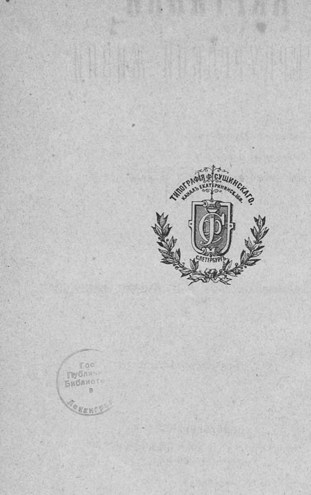 Перешедшие в общественное достояние материалы электронного фонда ЦГПБ им. В.В. Маяковского. Сведения о издательстве или типографии: тип. Ф. С. Сущинского. Место издания: СПб.