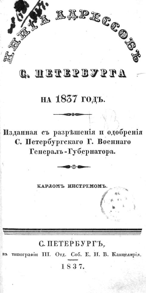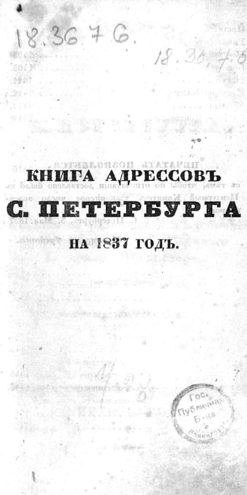 Книга адресов С.-Петербурга на 1837 год